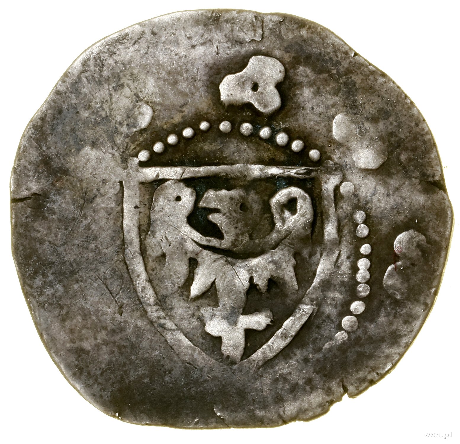 | 85 | Księstwo wrocławskie / Henryk V (1290–1296), Bolesław III (1296–1352) lub Henryk VI (1311–1335) Kwartnik; Aw: Tarcza, w której Orzeł z przepaską na piersi, w otoku trzypłatkowe rozety; Rw: Korona, otok nieczytelny; Fbg 1106, Frynas S.Wroc.3-5.3 (VR), Such. Ostró.. |