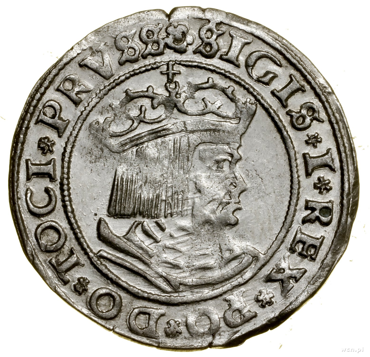 | 156 | Zygmunt I Stary (1506–1548) / monety pruskie Grosz, 1533, Toruń; końcówki legend PRVSS / PRVSSIE; Białk.-Szw. 86, CNCT 1255, Kop. 3088, Kurp. (1506–1573) 318 (R), PN2-Dut. 89; piękny portret władcy. |