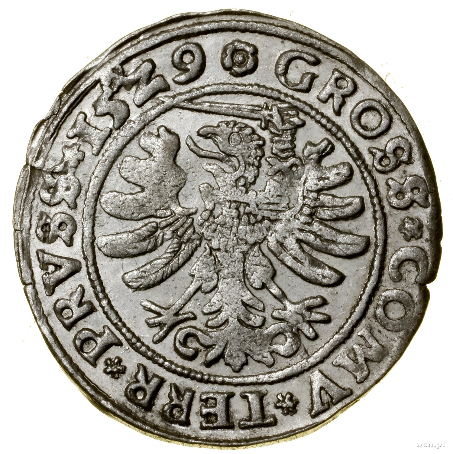 | 152 | Zygmunt I Stary (1506–1548) / monety pruskie Grosz, 1529, Toruń; końcówki legend PRVSS / PRVSS; Białk.-Szw. 77, CNCT 1200, Kop. 3083 (R), Kurp. (1506–1573) 266 (R), PN2-Dut. 41; patyna. |