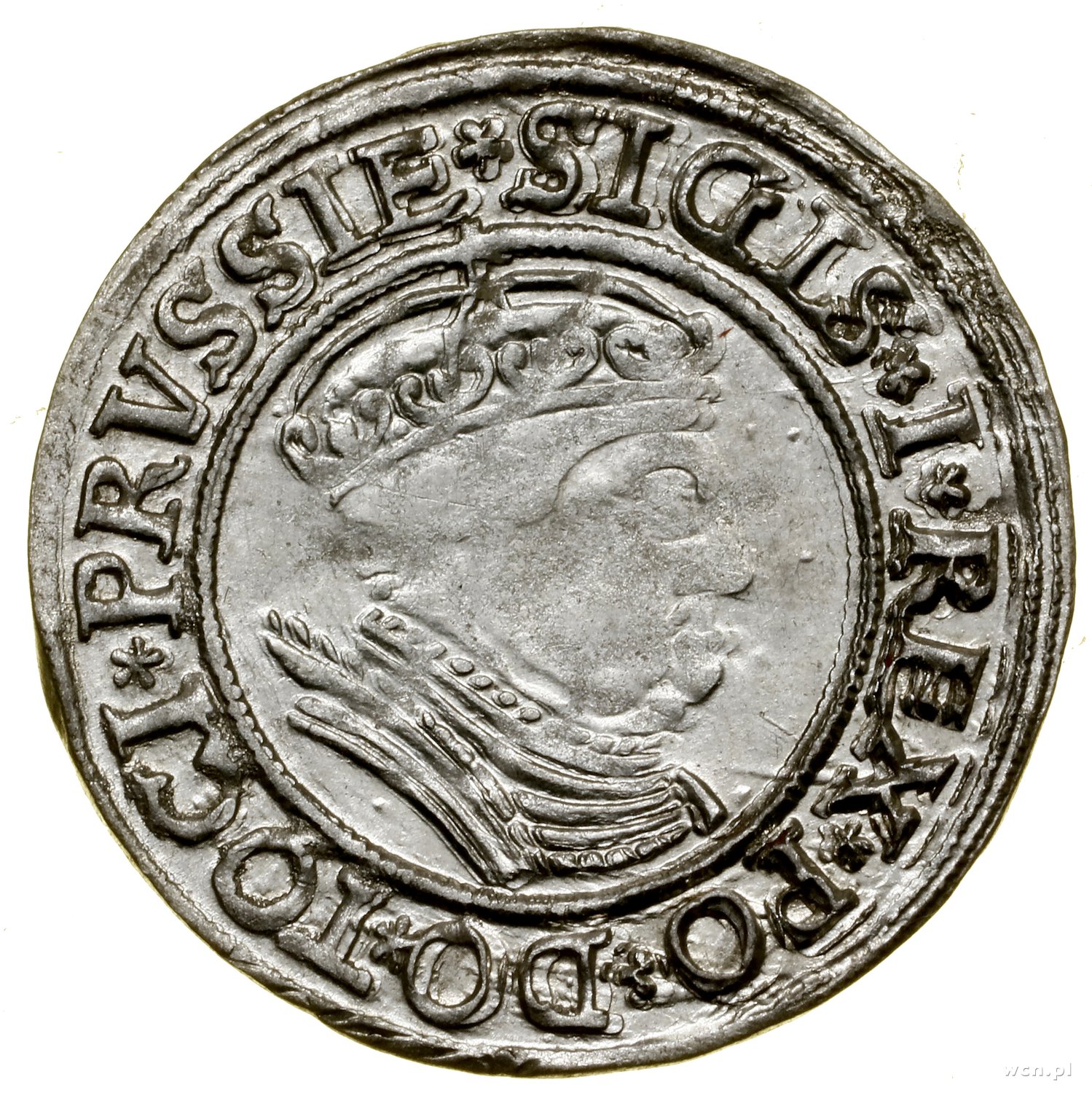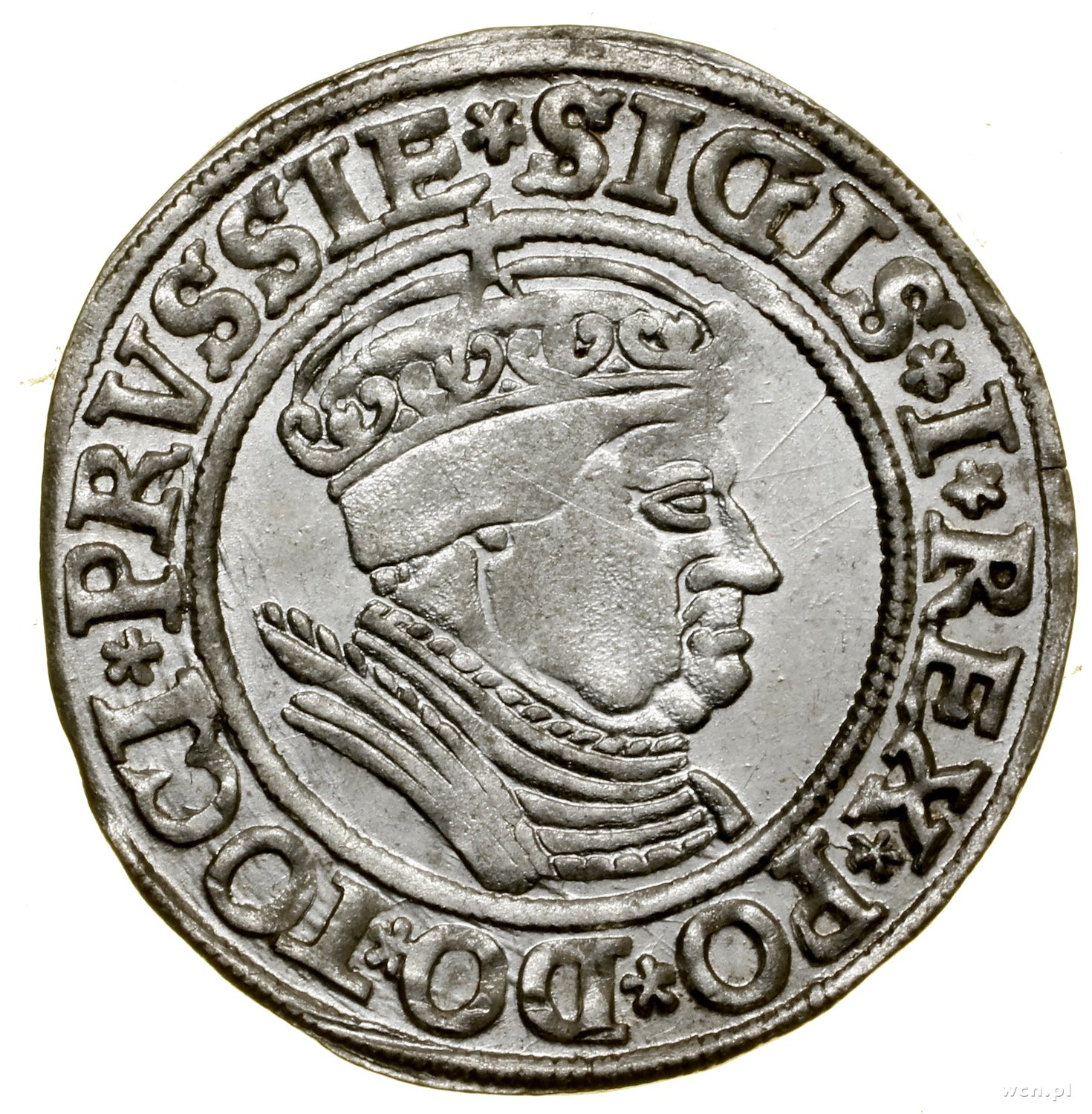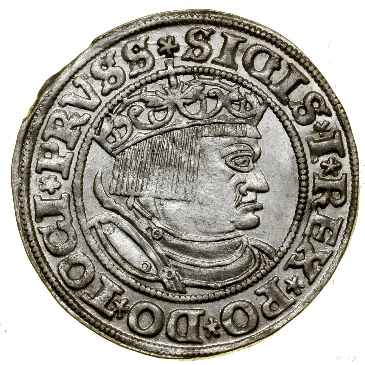 | 157 | Zygmunt I Stary (1506–1548) / monety pruskie Grosz, 1534, Toruń; popiersie władcy w czepcu i koronie, końcówki legend PRVSSIE / PRVSSIE; Białk.-Szw. 92, CNCT 1273, Kop. 3090, Kurp. (1506–1573) 336 (R1), PN2-Dut... |