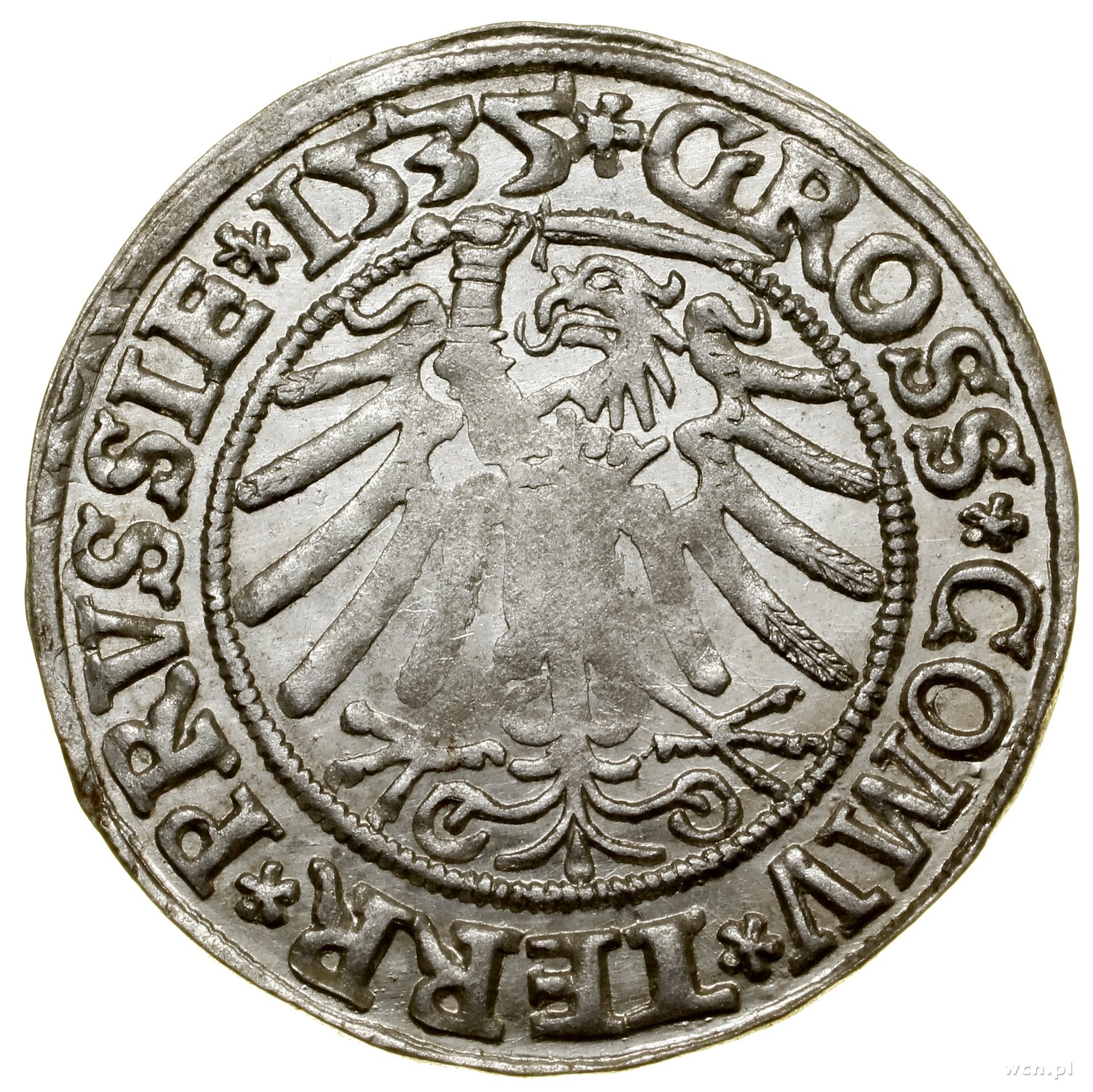| 147 | Zygmunt I Stary (1506–1548) / miasto Elbląg Grosz, 1535, Elbląg; końcówki legend PRVSSI / ELBINK; Białk.-Szw. 255, CNCE 173 (R3), Kop. 7082, Kurp. (1506–1573) 601 (R), Pfau 129, PN2-Dut. 138; pięknie zachowany,.. |