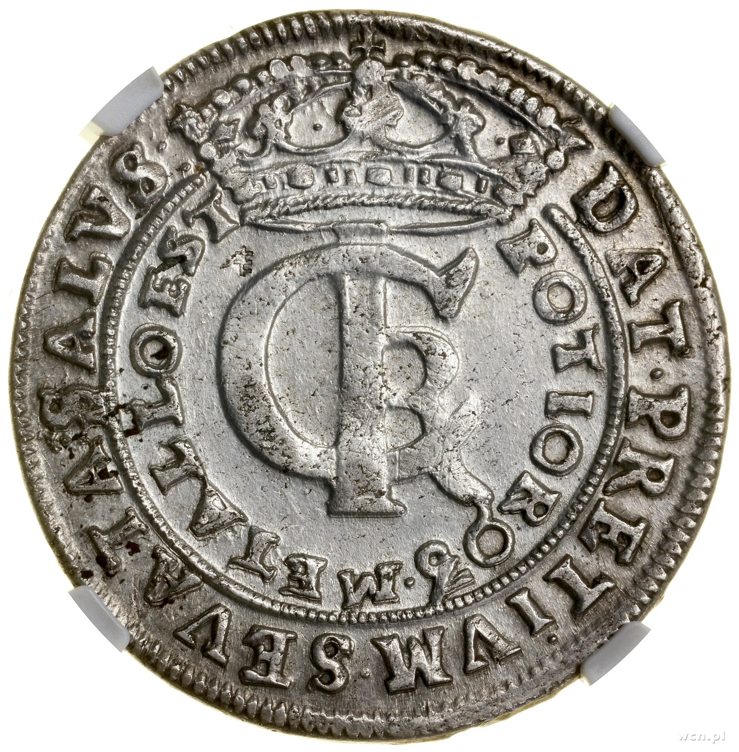 | 218 | Jan II Kazimierz (1649–1668) / miasto Gdańsk Ort, 1660, Gdańsk; odmiana z popiersiem bez rękawa, w legendzie awersu IOAN, w legendzie rewersu GEDANENSIS, przy łapach lwów inicjały D - L (dzierżawca mennicy Danie.. |