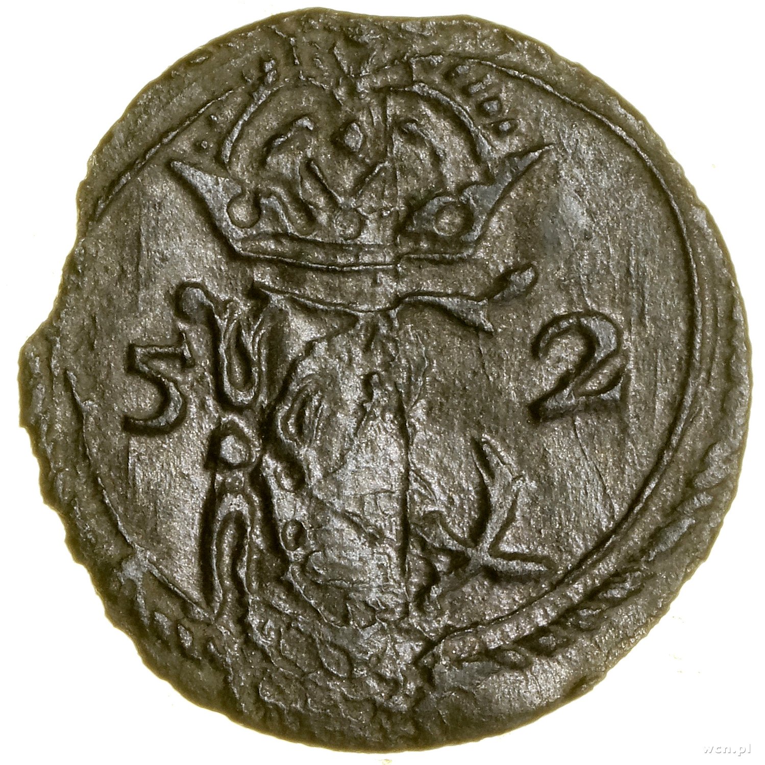 | 215 | Jan II Kazimierz (1649–1668) / monety litewskie Szeląg, 1652, Wilno; odmiana z napisem 360 pod Pogonią; Ivanauskas 1JK1-1 (RR), Kop. 3578 (R5), Kurp. (1649–1696) 729 (R5), Tyszkiewicz 12 mk; bardzo rzadka odmiana m.. |