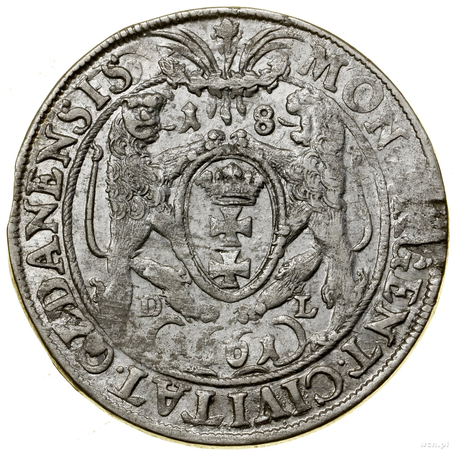 | 219 | Jan II Kazimierz (1649–1668) / miasto Gdańsk Ort, 1661, Gdańsk; w legendzie awersu IOH…PR, w legendzie rewersu GEDANENSIS, przy łapach lwów inicjały D - L (dzierżawca mennicy Daniel Lesse), pomiędzy cyframi nomi.. |