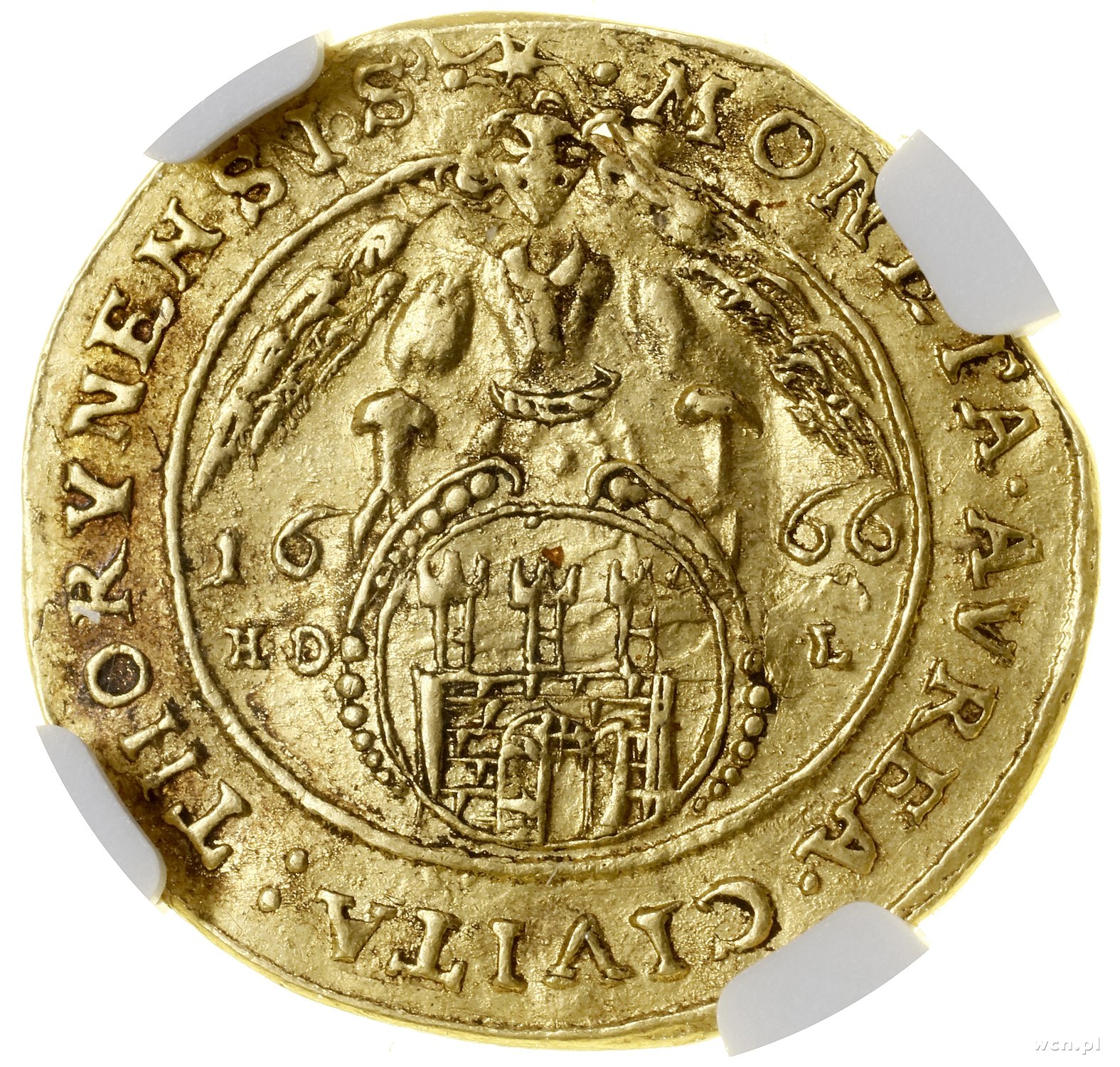 | 222 | Jan II Kazimierz (1649–1668) / miasto Toruń Dukat, 1666, Toruń; Aw: Popiersie króla w prawo, IOAN CAS D G REX POL ET SVE M D L R P; Rw: Herb Torunia, po bokach data 16 - 66 i inicjały HD - L (mincerza i wardajn.. |