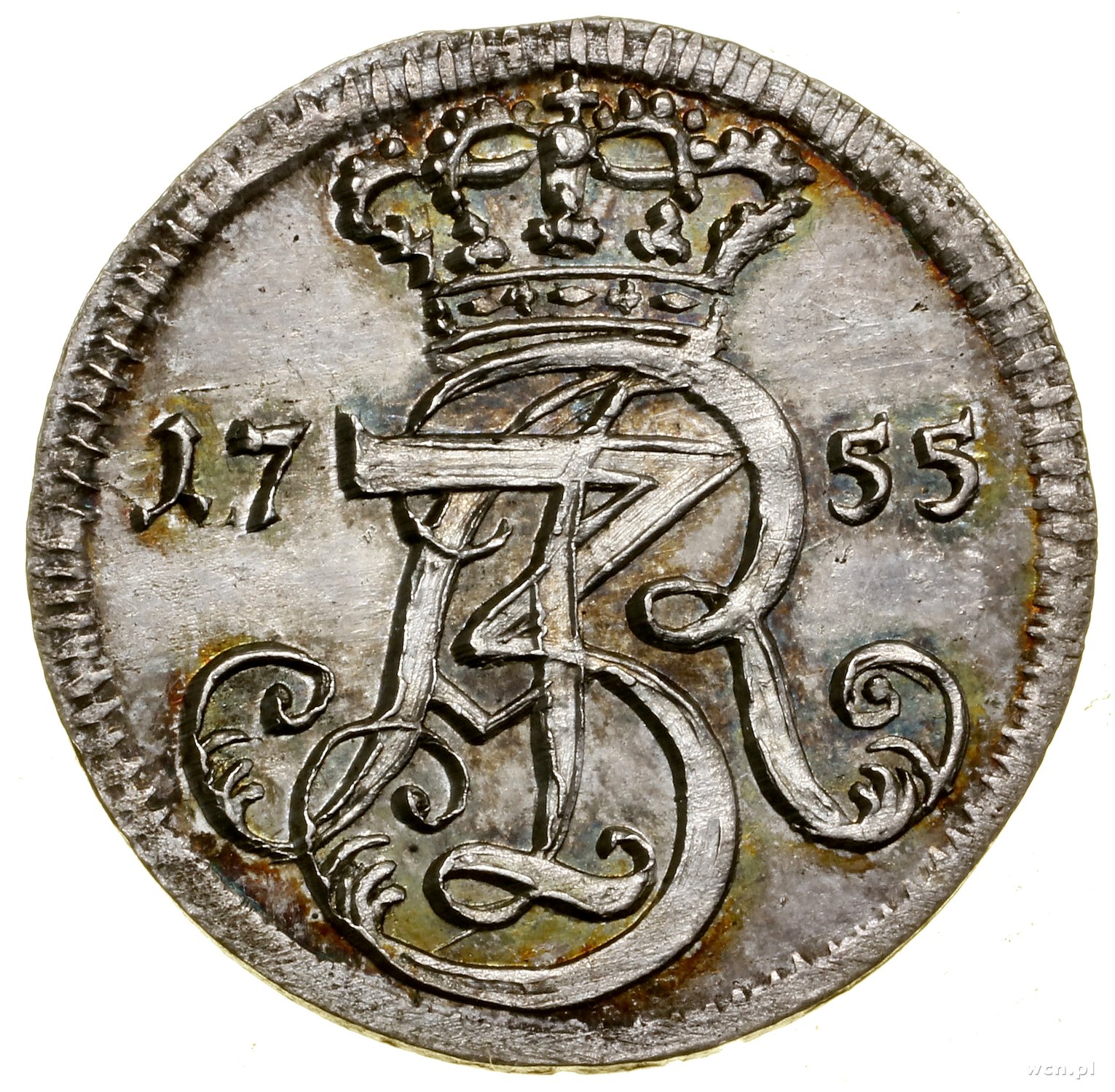 | 268 | August III (1733–1763) / miasto Gdańsk Trojak z czystego srebra, 1755, Gdańsk; wariant z cyfrą „3” w monogramie, której górna belka wystaje poza obrys liter; CNG 406b, H-Cz. 2909, Iger G.55.2.c (R5) (tam n.. |