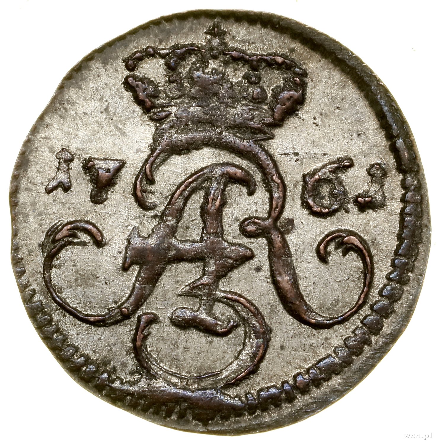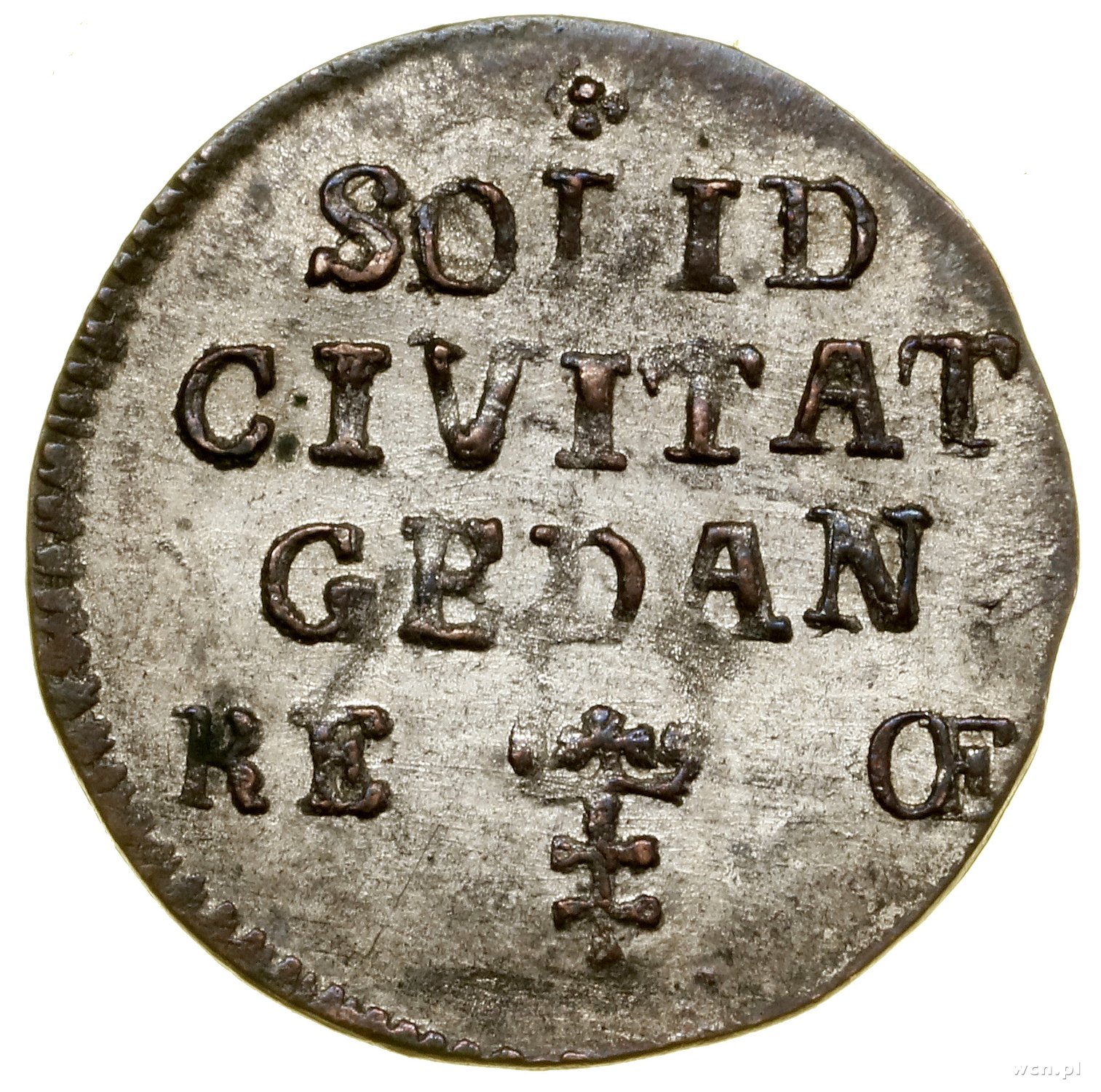 | 271 | August III (1733–1763) / miasto Gdańsk Szeląg srebrny, 1761, Gdańsk; po bokach herbu inicjały R - E - Œ (mincmistrz Rudolf Ernest Oeckermann); CNG 404a, Kahnt 741 var. a, Kop. 7724 (R5), Kurp. (1697–1763) .. |