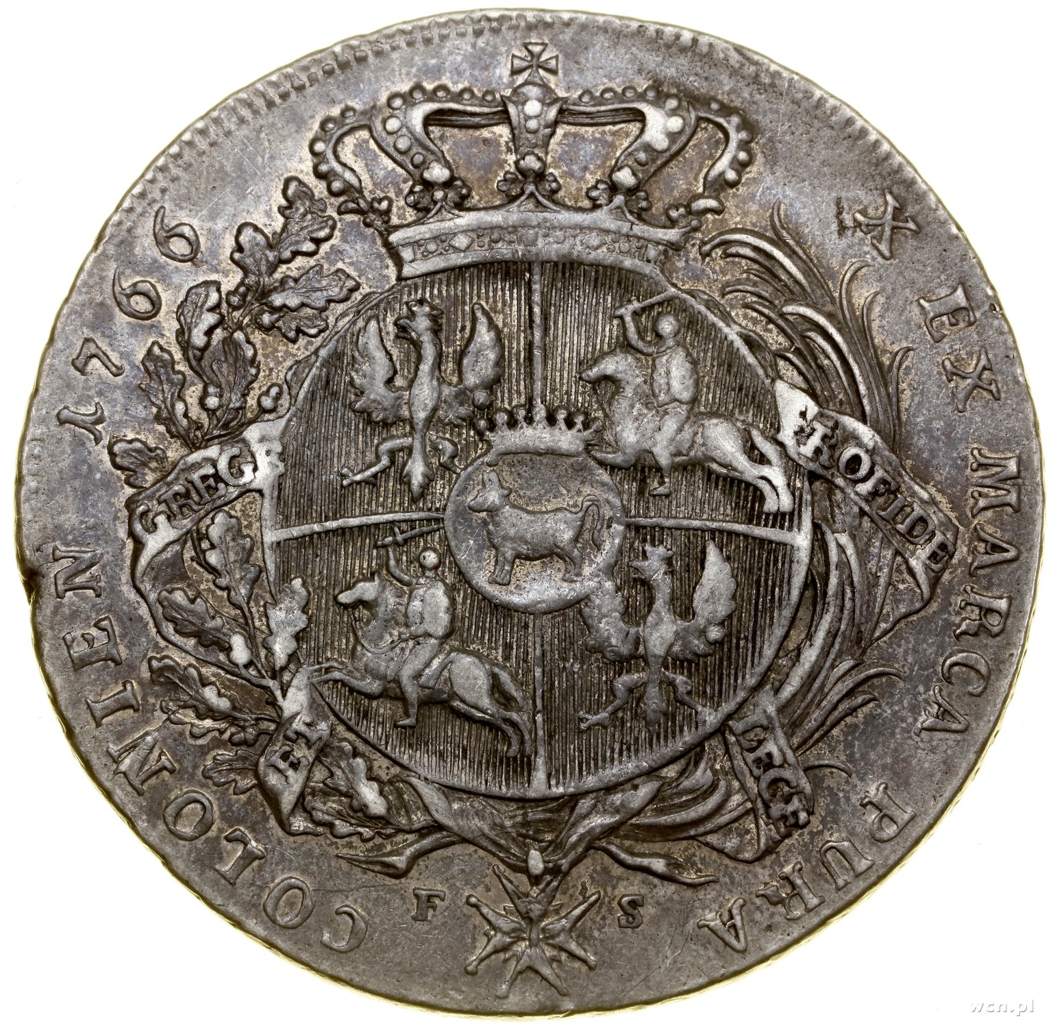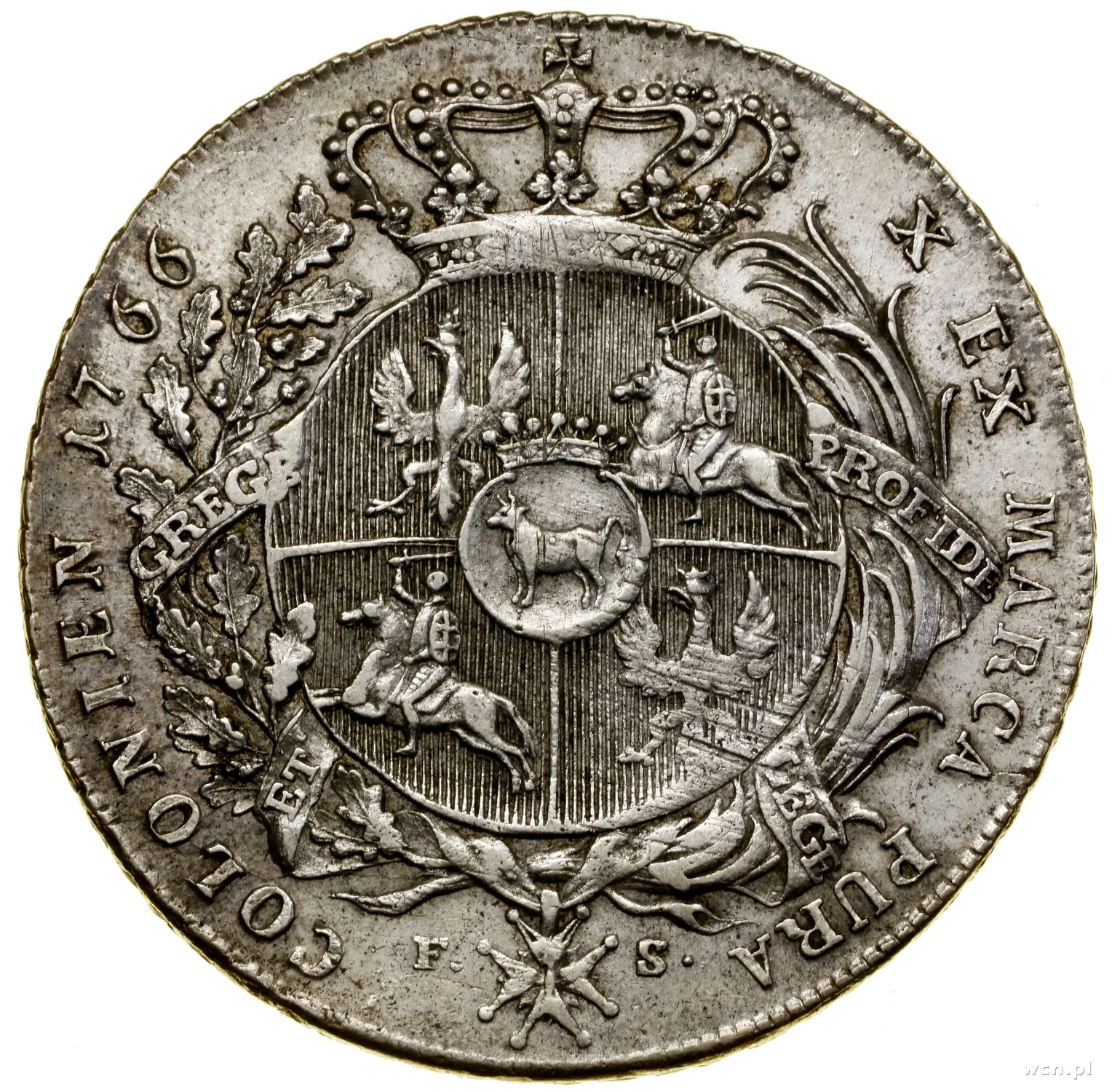 | 281 | Stanisław August Poniatowski (1764–1795) / monety koronne Talar, 1766 FS, Warszawa; Aw: Popiersie króla w zbroi, STANISLAUS AUGUSTUS D G REX POL M D LITHU; Rw: Ukoronowana, owalna, pięciopolowa tarcza herbowa, z herbem Ciołe.. |