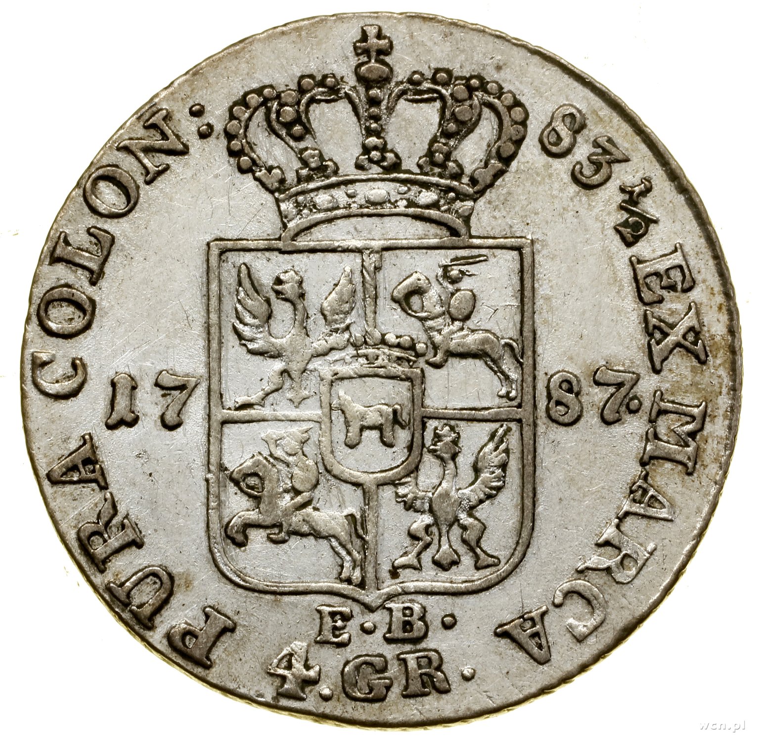 | 288 | Stanisław August Poniatowski (1764–1795) / monety koronne Złotówka, 1787 EB, Warszawa; Kop. 2376, Parchimowicz SAP 22.a, Plage 295, Berezowski 1.25 zł; patyna, moneta w ładnym stanie zachowania. |