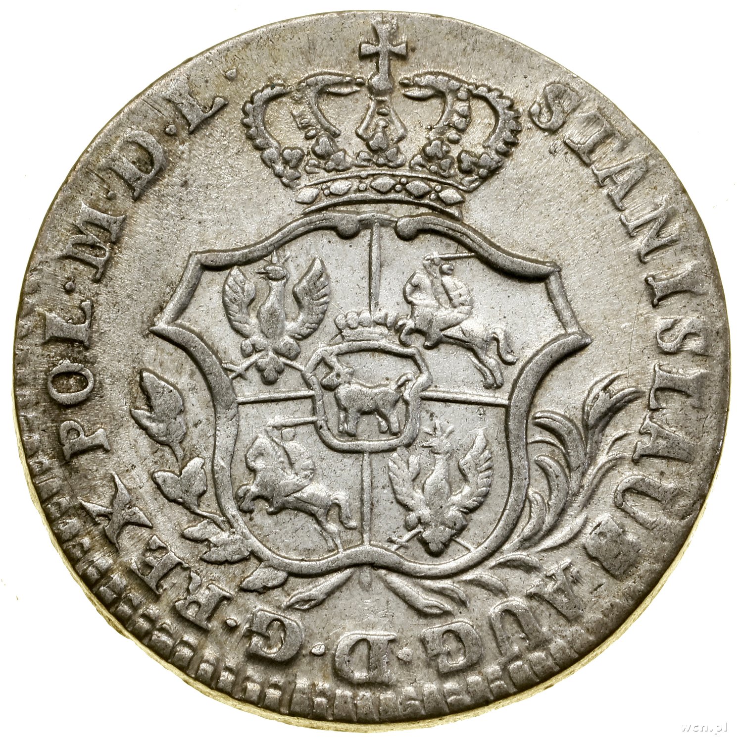 | 289 | Stanisław August Poniatowski (1764–1795) / monety koronne Półzłotek (2 grosze srebrne), 1766 FS, Warszawa; tarcza herbowa szeroka u dołu, po lewej stronie siedem listków lauru; Kop. 2320, Parchimowicz SAP 16.a10, Plage 244; .. |