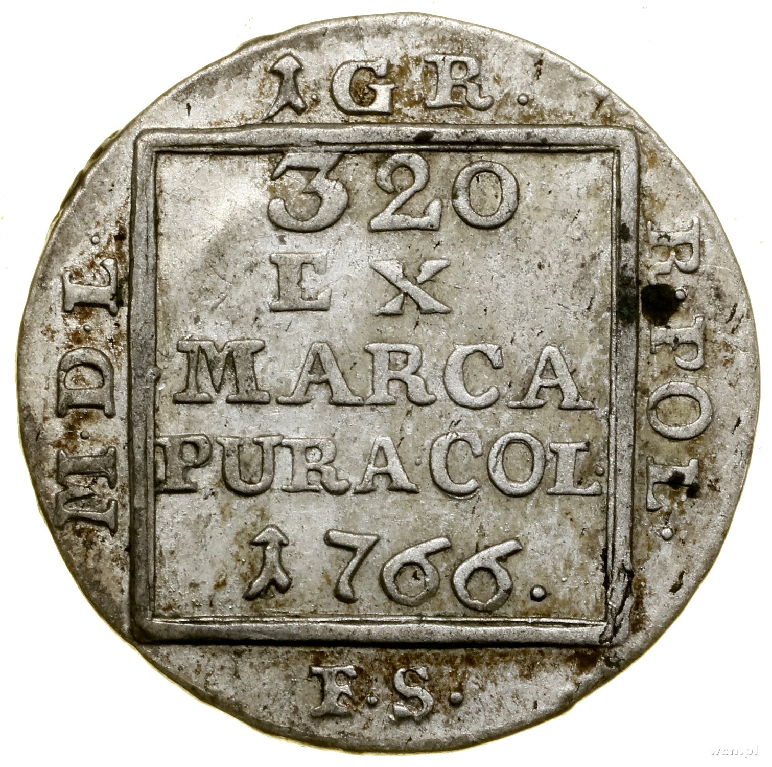 | 293 | Stanisław August Poniatowski (1764–1795) / monety koronne Grosz srebrny, 1766 FS, Warszawa; bez napisu po bokach ramki; Kop. 2299 (R4), Parchimowicz SAP 14.a, Plage 214, Berezowski 12.50 zł; bardzo ładnie zachowany i bardzo .. |