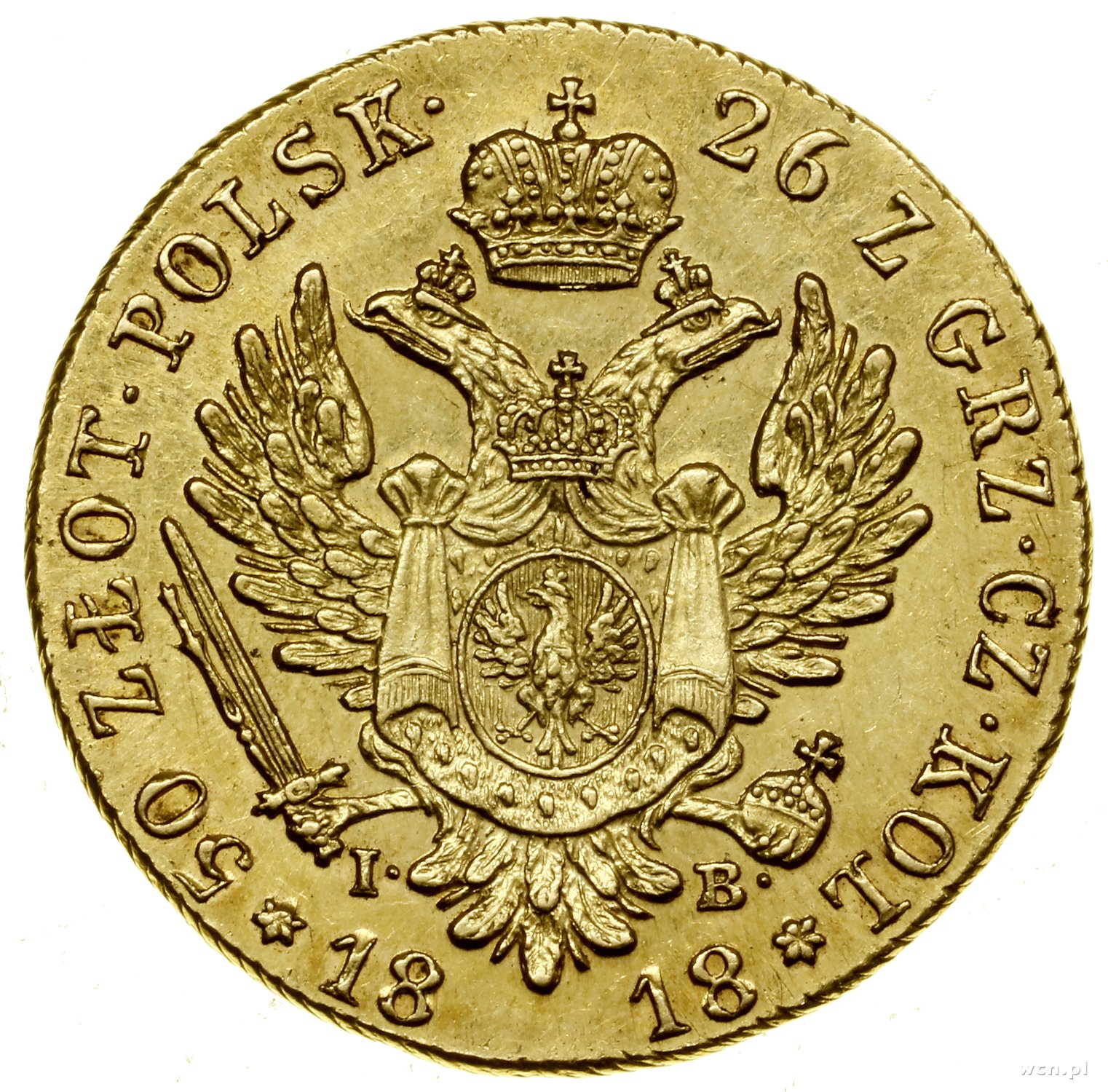 | 304 | Królestwo Kongresowe (1815–1835) / Aleksander I (1815–1825) 50 złotych, 1818 IB, Warszawa; Aw: Głowa cara w prawo i napis w otoku ALEXANDER I CESARZ SA W ROS KRÓL POLSKI; Rw: Dwugłowy Orzeł rosyjski z jabłkiem królewskim i mie.. |