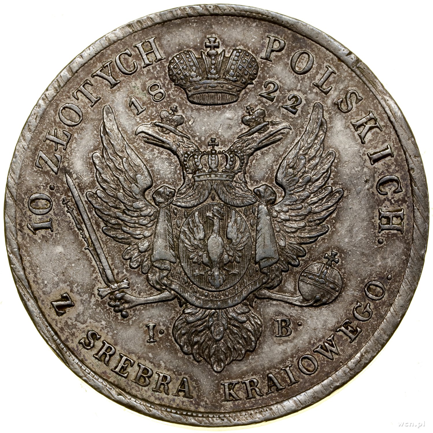 | 308 | Królestwo Kongresowe (1815–1835) / Aleksander I (1815–1825) 10 złotych, 1822 IB, Warszawa; Aw: Głowa cara w prawo i napis w otoku ALEXANDER I CESARZ SA W ROS KRÓL POLSKI; Rw: Orzeł carski z Orłem polskim na płaszczu gronostajo.. |
