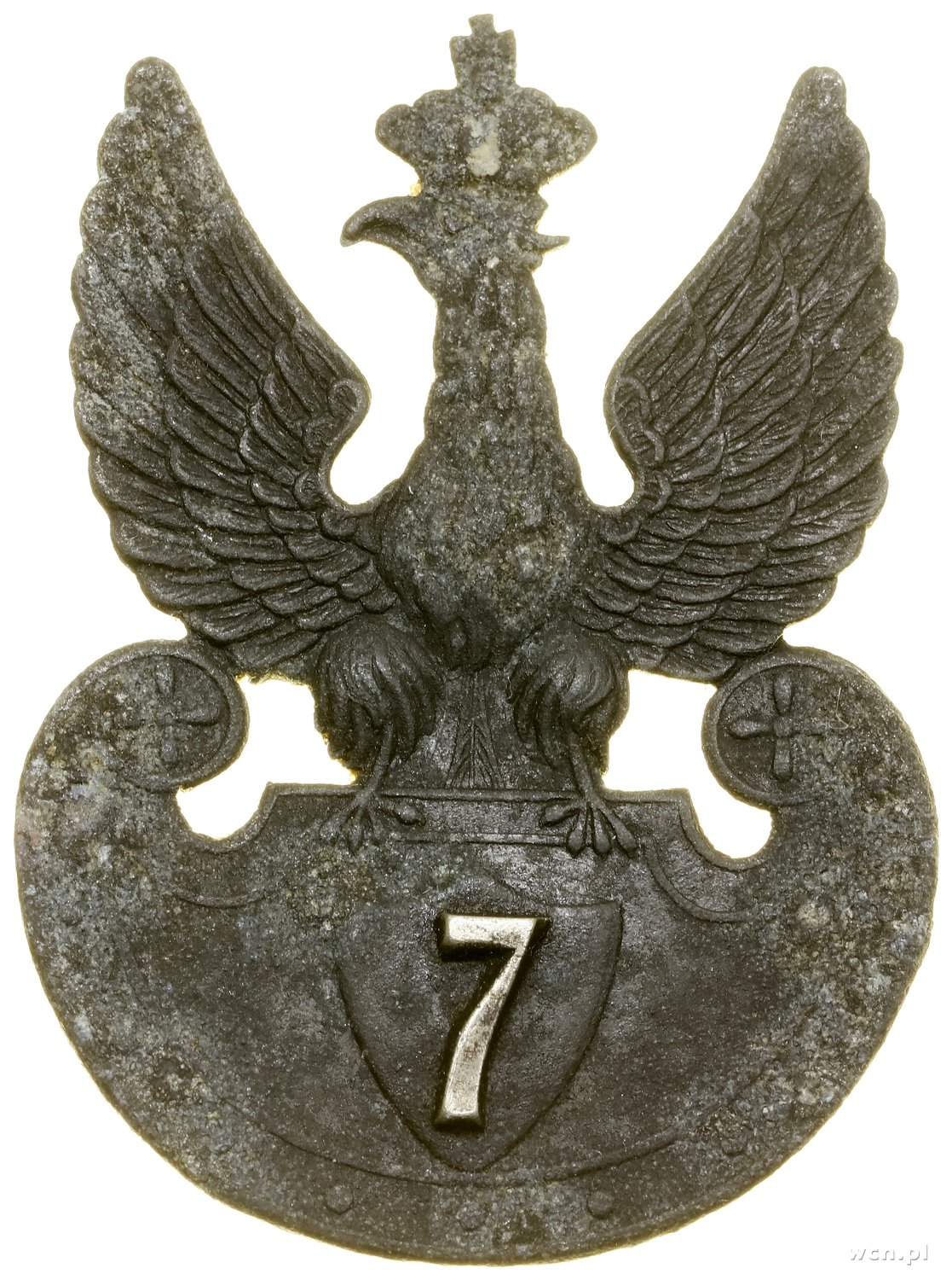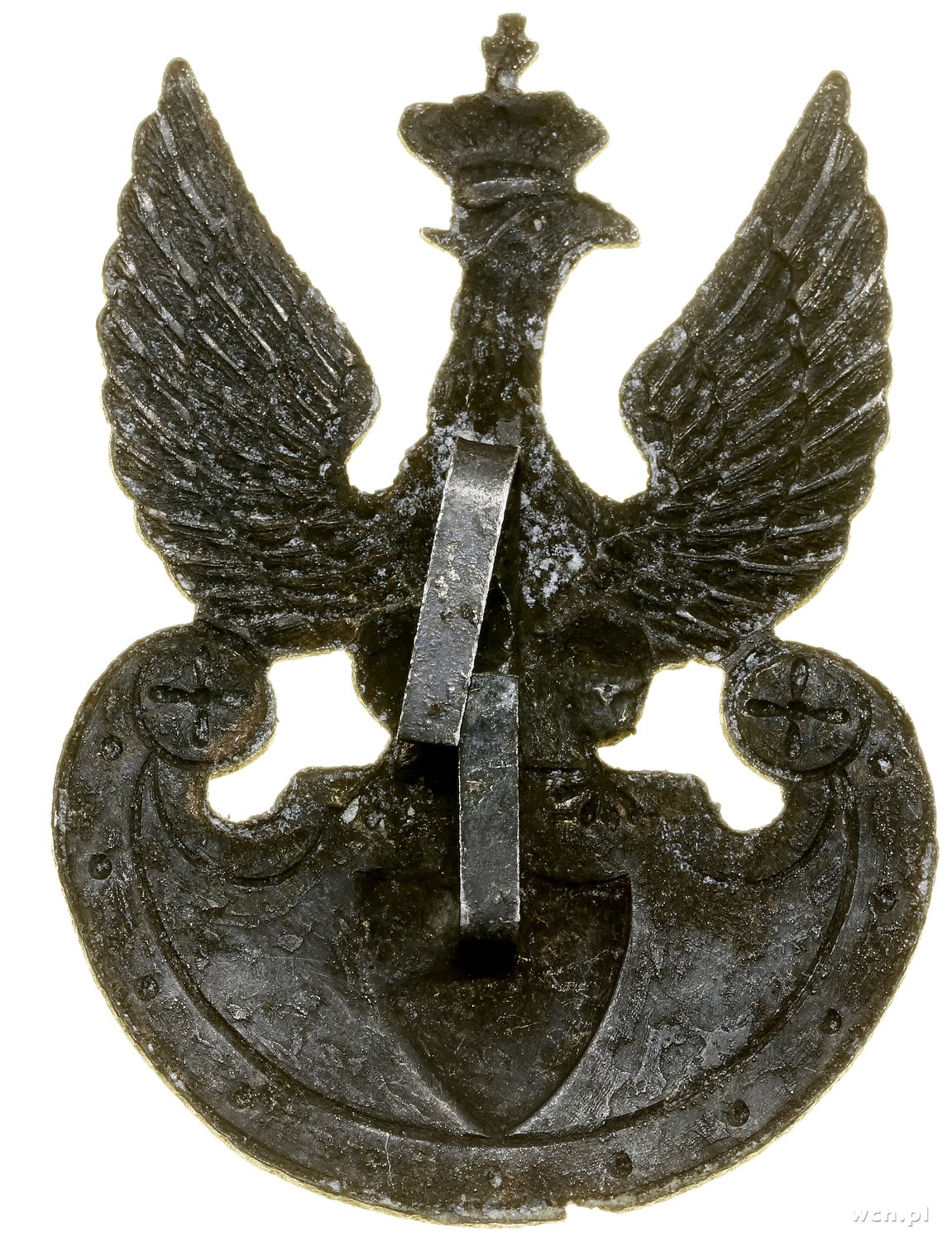 | 467 | POLSKA / I wojna światowa (1914–1918) Orzeł do czapki, 1916, Kraków; Ukoronowany orzeł z rozpostartymi skrzydłami, stojący na tarczy amazonek, w tarczy cyfra 7, bity z kontrą, mocowany na dwie blaszki; Za.. |