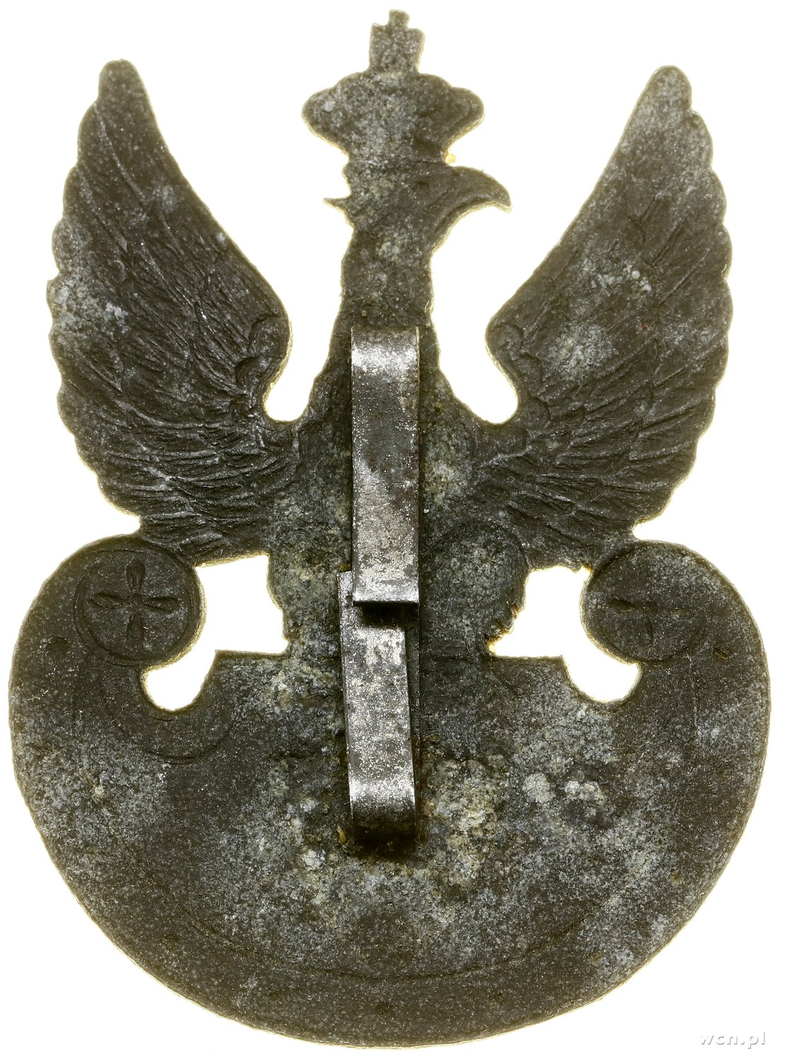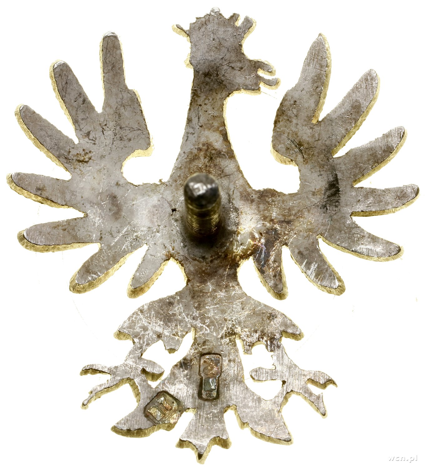 | 464 | POLSKA / I wojna światowa (1914–1918) Orzeł do czapki, 1914/1915, Kraków; Orzeł z rozpostartymi skrzydłami, stojący na tarczy amazonek, w tarczy litera L, bity z kontrą, mocowany na dwie blaszki; Zawistow.. |
