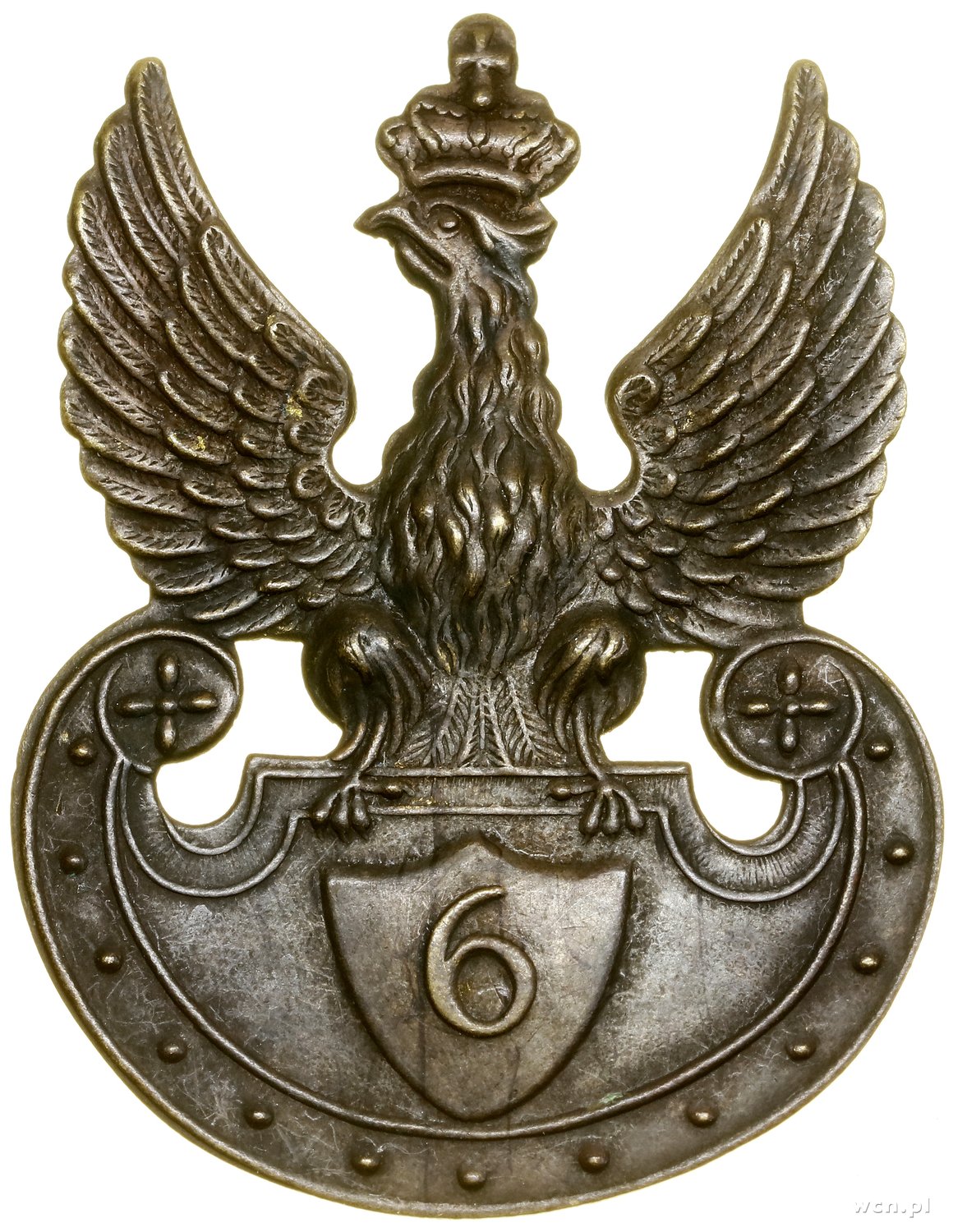 | 469 | POLSKA / I wojna światowa (1914–1918) Orzeł do czapki, 1917, Kraków; Ukoronowany orzeł z rozpostartymi skrzydłami, stojący na tarczy amazonek, w tarczy cyfra 6, bity z kontrą, mocowany na dwie blaszki; Za.. |