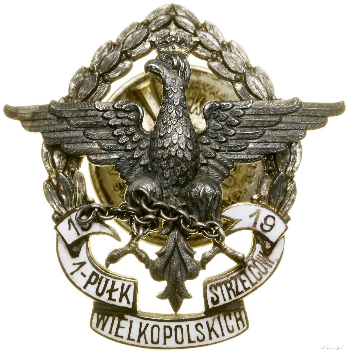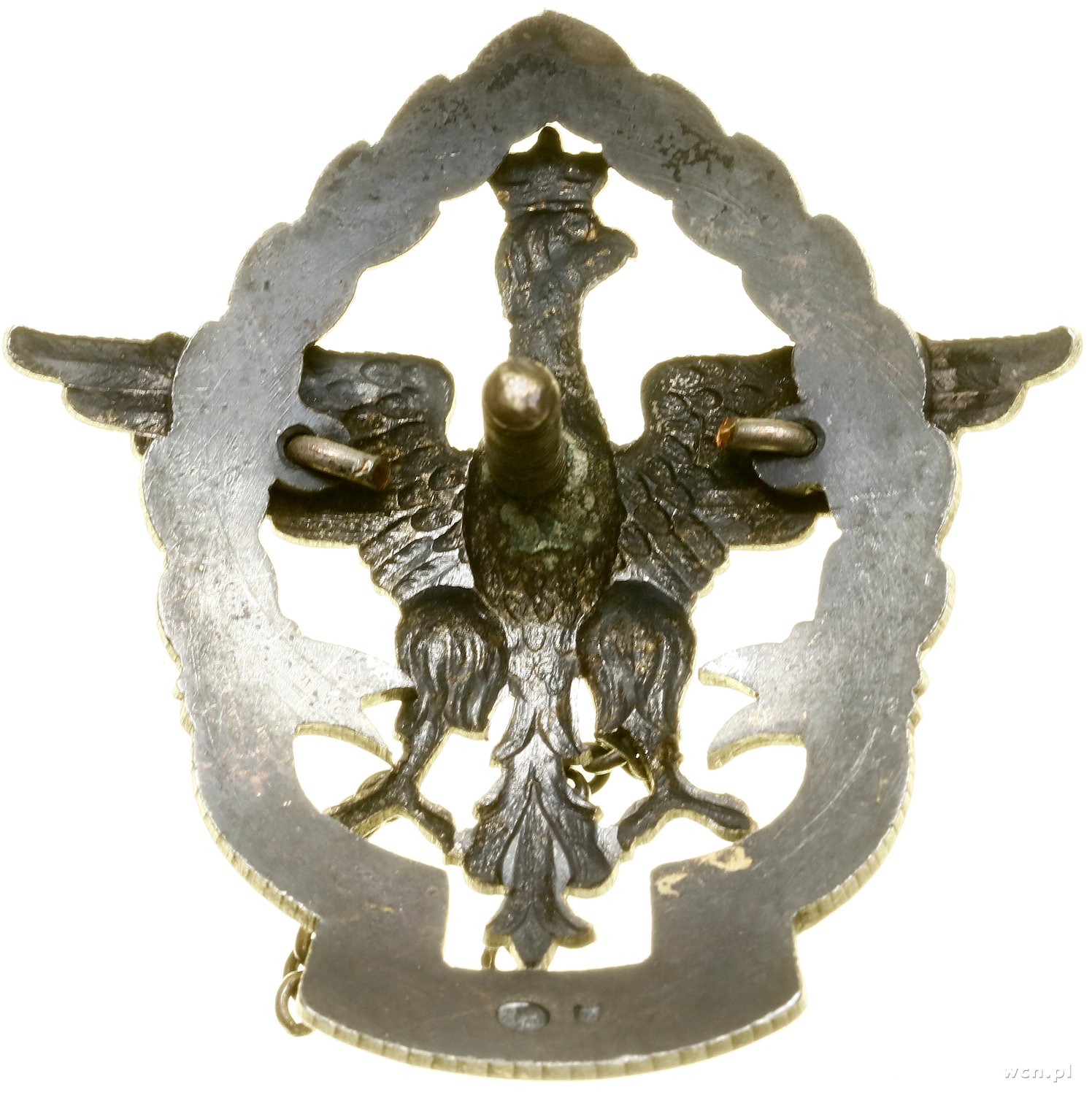 | 476 | II Rzeczpospolita (1918–1939) 55. Pułk Piechoty – oficerska odznaka pamiątkowa, od 1931, Warszawa; Orzeł z rozpostartymi skrzydłami z ukoronowaną głową skierowaną w prawo, z zerwanymi okowami przy.. |