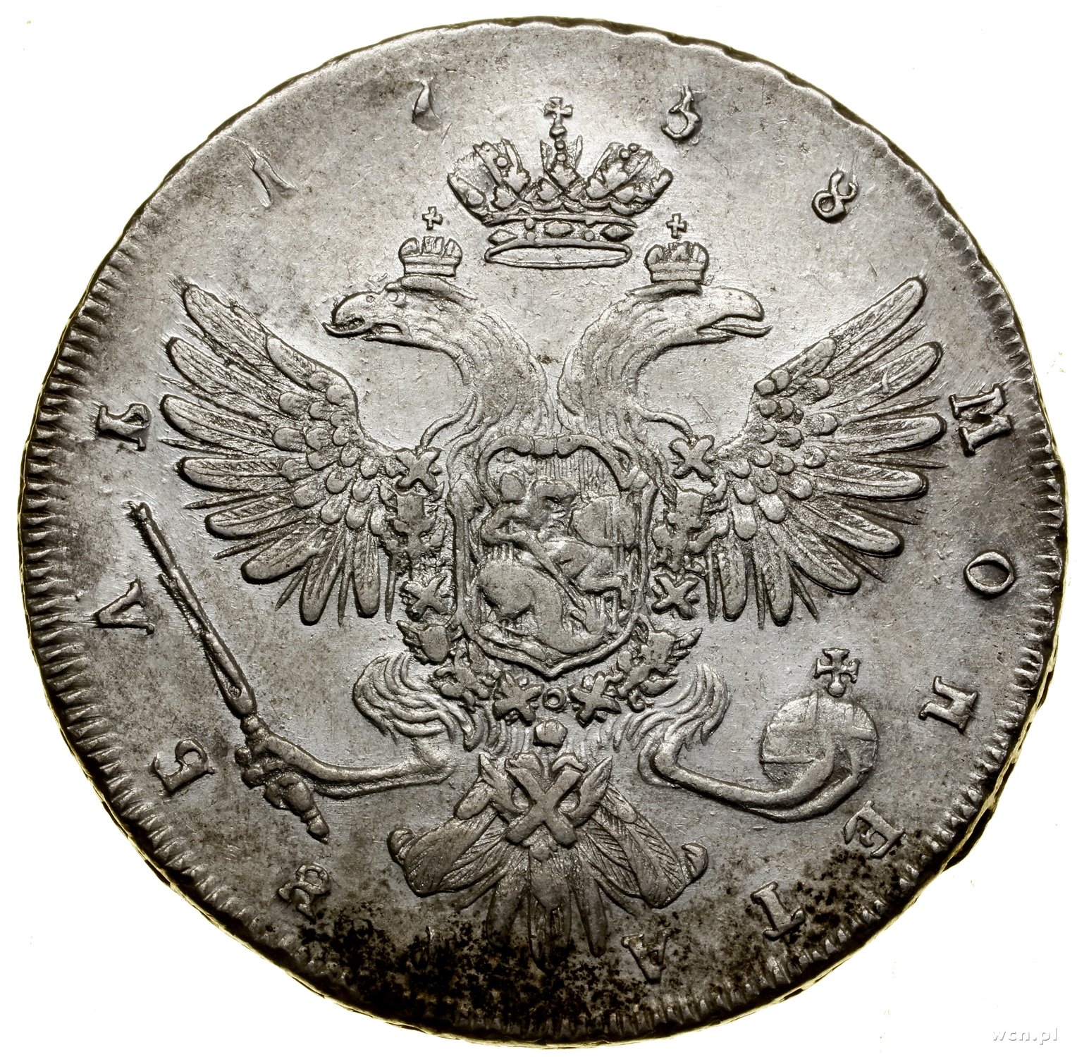 | 492 | ROSJA / Anna (1730–1740) Rubel, 1738, Petersburg; portret typu petersburskiego, litery СПБ pod rękawem władczyni, kropka na końcu legendy awersu; Bitkin 234 (R), Diakov 2.2.18, Uzdenikow 0734.. |