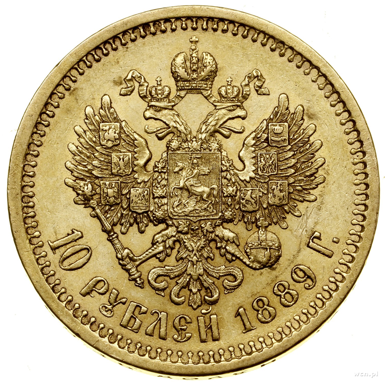 | 499 | ROSJA / Aleksander III (1881–1894) 10 rubli, 1889 (А•Г), Petersburg; Bitkin 18 (R), Fr. 167, Kazakov 701, Uzdenikow 0300; złoto, 12.90 g; bardzo rzadki rocznik w pięknym stanie zachowania. |