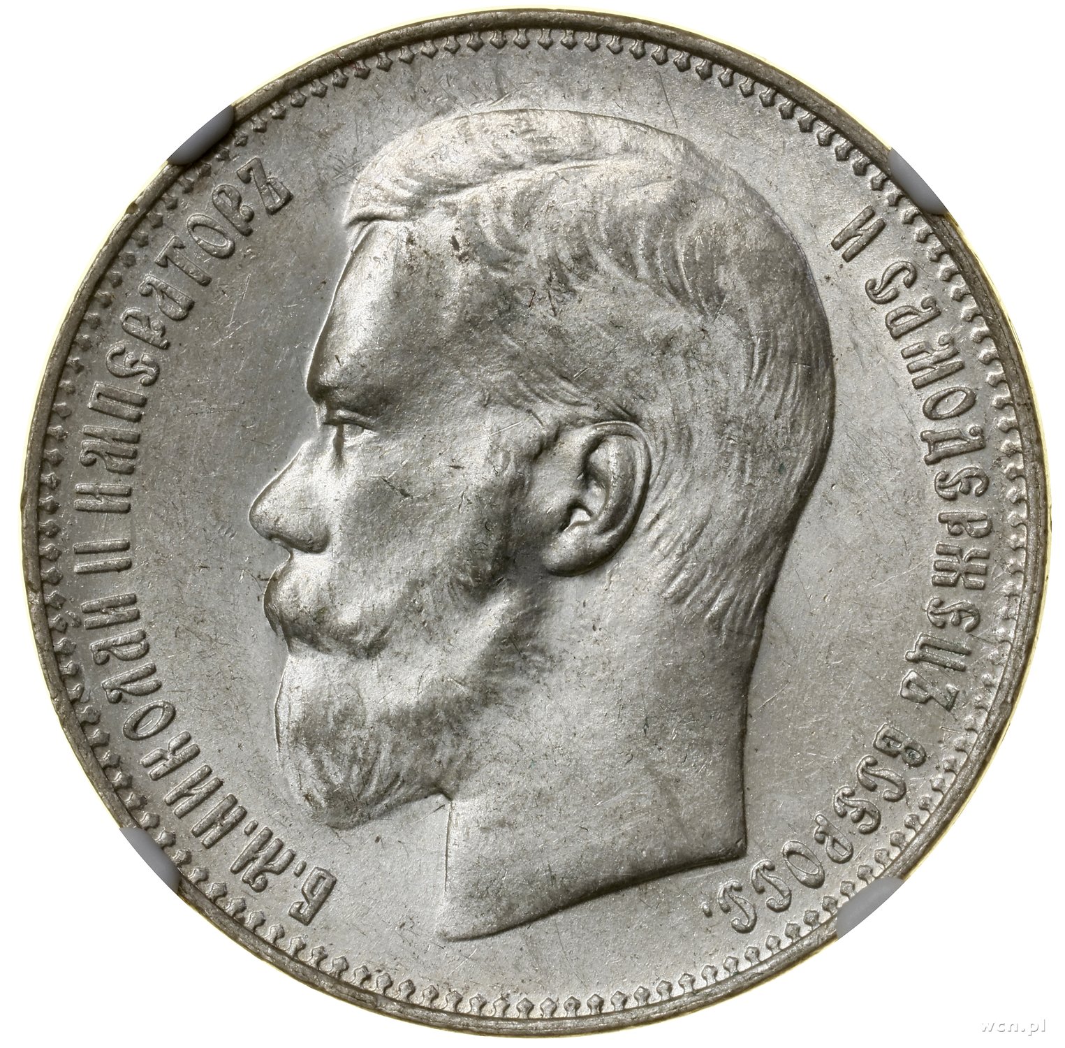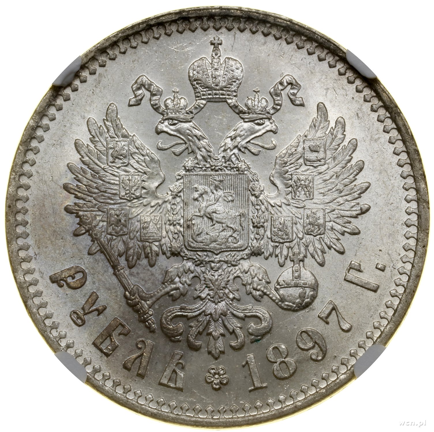 | 505 | ROSJA / Mikołaj II (1894–1917) Rubel, 1897 **, Bruksela; Bitkin 203, Kazakov 79, Uzdenikow –; pięknie zachowana moneta w pudełku NGC 8360863-002 z oceną MS61. |
