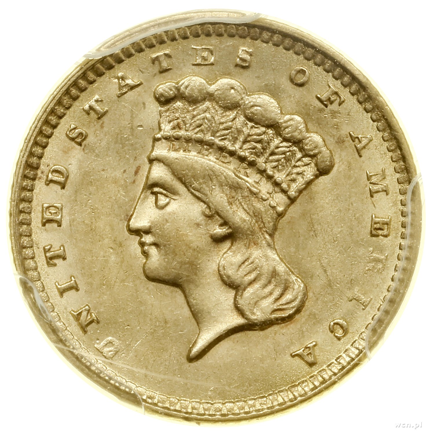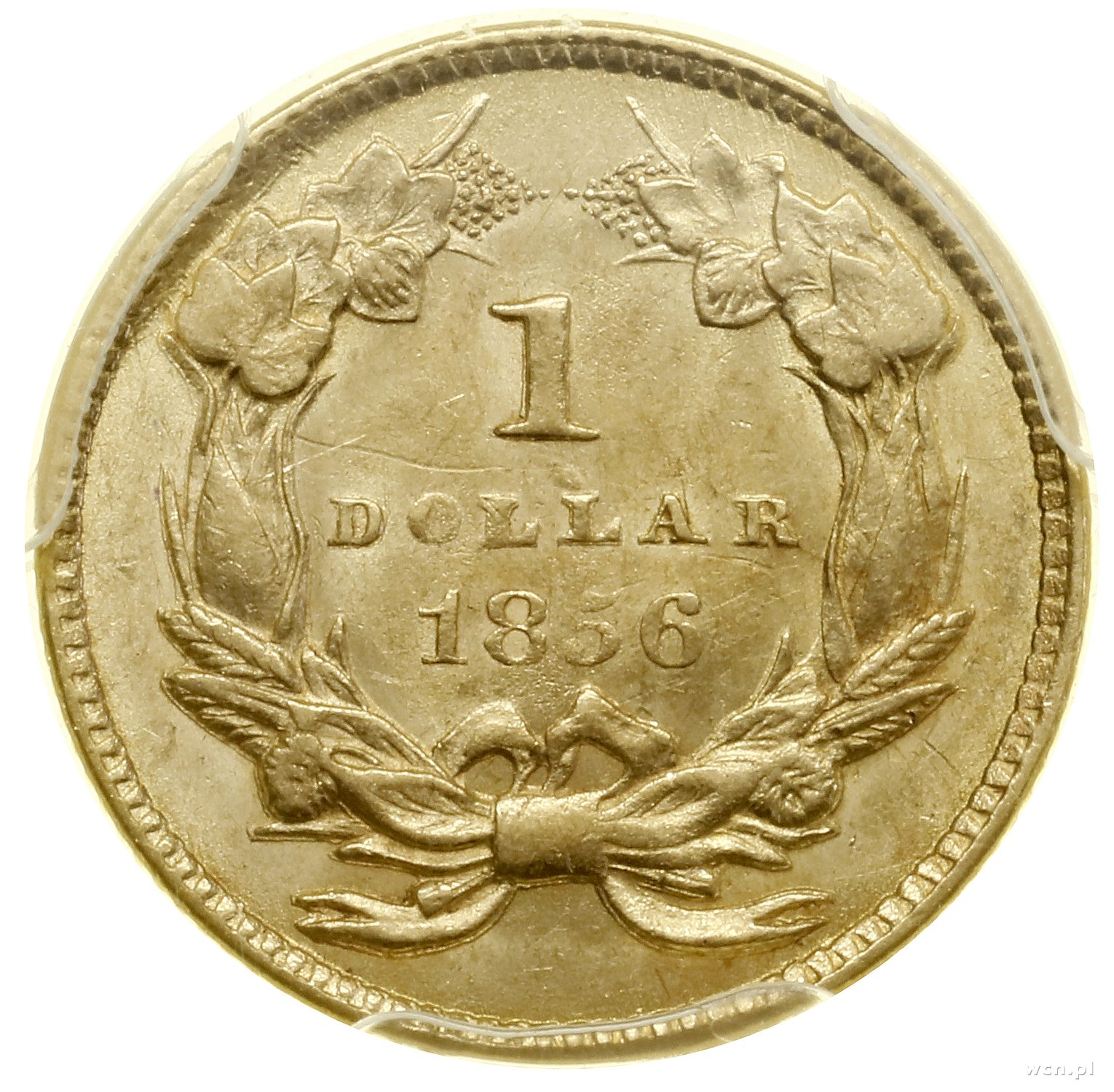 | 511 | STANY ZJEDNOCZONE AMERYKI (USA) 1 dolar, 1856, Filadelfia; typ Liberty Head; Fr. 94, KM 86; złoto; nakład 1.762.936 sztuk, bardzo ładna moneta w pudełku PCGS 7540.58/81412740 z oceną AU58. |