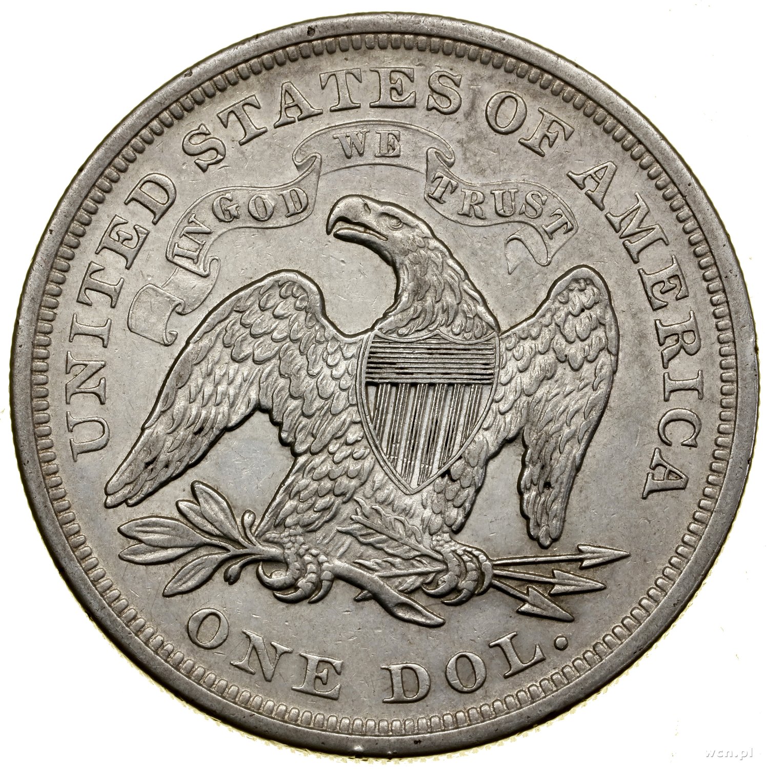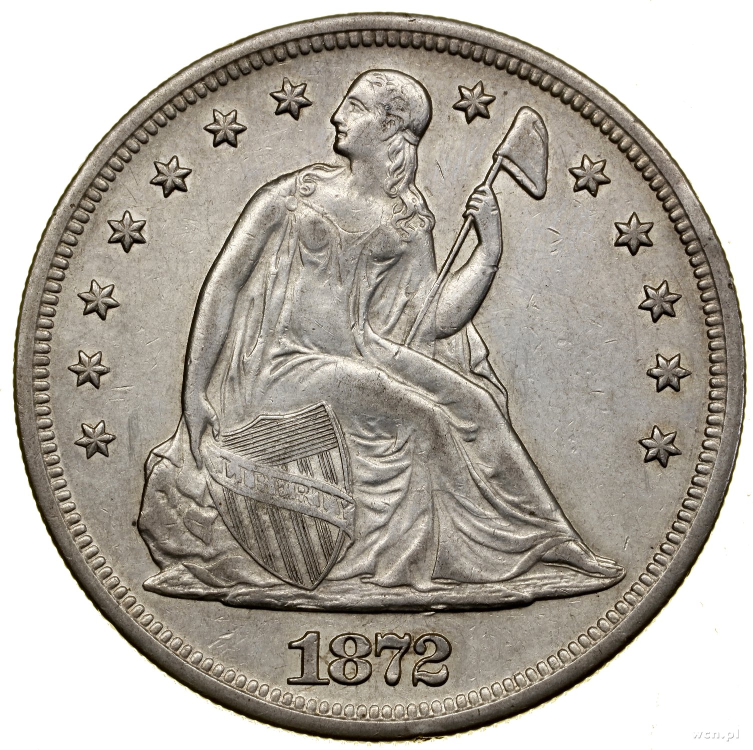 | 512 | STANY ZJEDNOCZONE AMERYKI (USA) 1 dolar, 1872, Filadelfia; typ Seated Liberty with motto; KM 100; srebro, 26.65 g; ładnie zachowana moneta. |