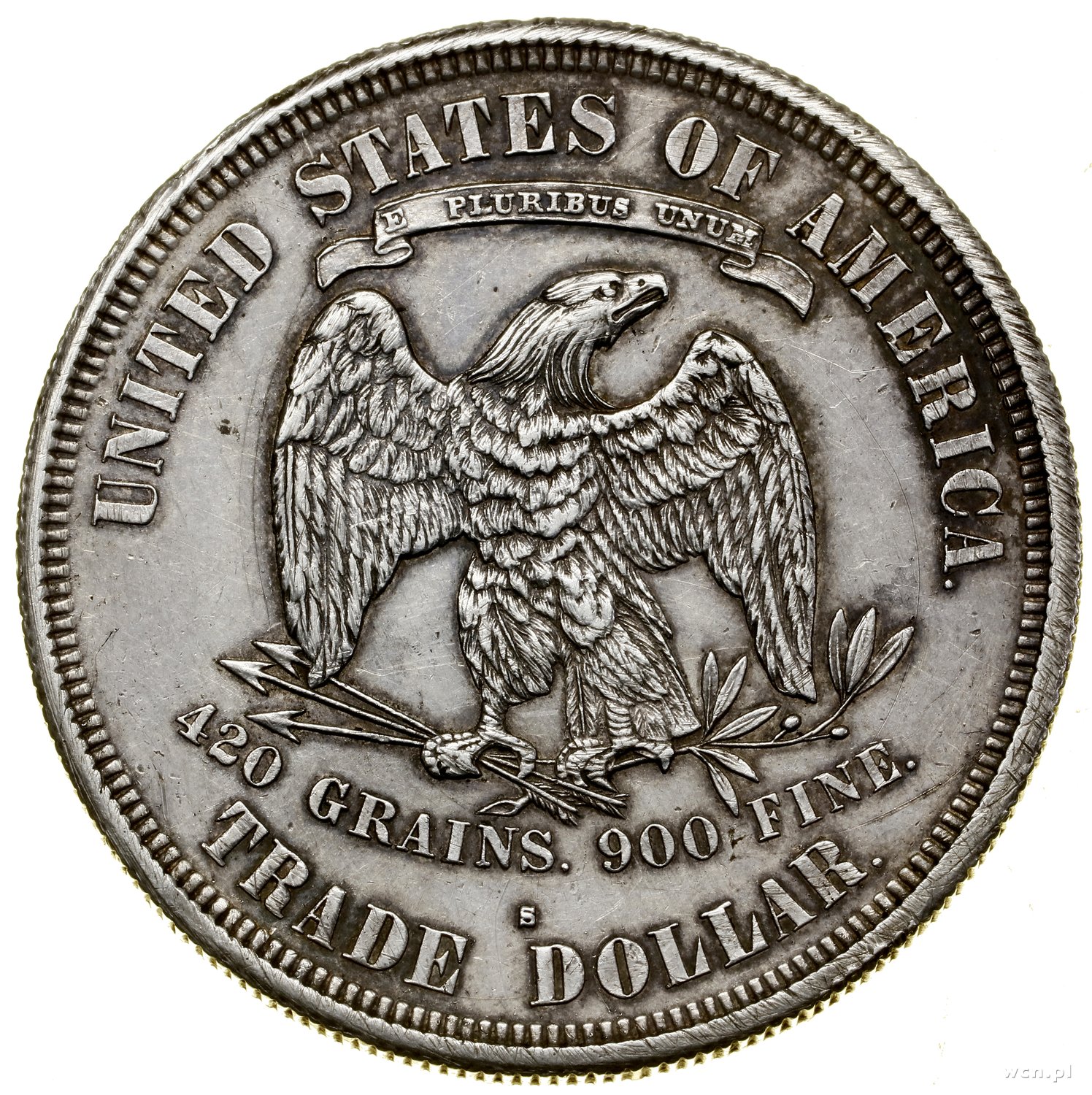| 513 | STANY ZJEDNOCZONE AMERYKI (USA) 1 Trade Dollar, 1877 S, San Francisco; typ Seated Liberty; KM 108; srebro, 27.21 g; czyszczony, ciemna patyna. |