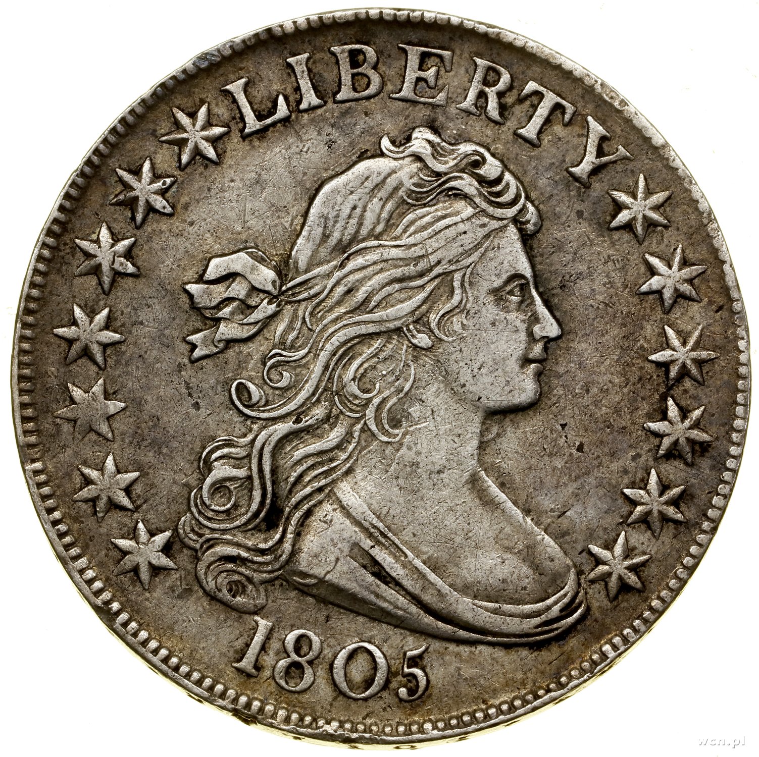| 514 | STANY ZJEDNOCZONE AMERYKI (USA) 50 centów (1/2 dolara), 1805, Filadelfia; typ Draped Bust; KM 35; srebro, 13.48 g; niski nakład: 211.722 sztuki, patyna, ładnie zachowana moneta. |