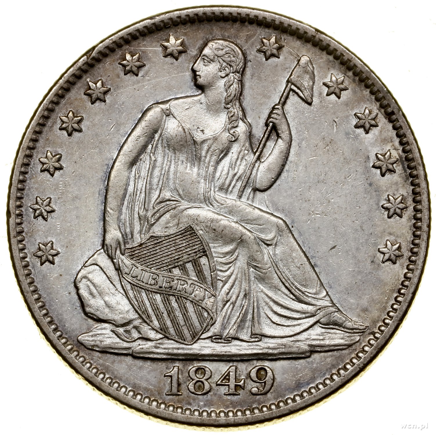 | 516 | STANY ZJEDNOCZONE AMERYKI (USA) 50 centów (1/2 dolara), 1849 O, Nowy Orlean; typ Seated Liberty; KM 68; srebro, 13.35 g; przetarte, ale ładnie zachowane. |