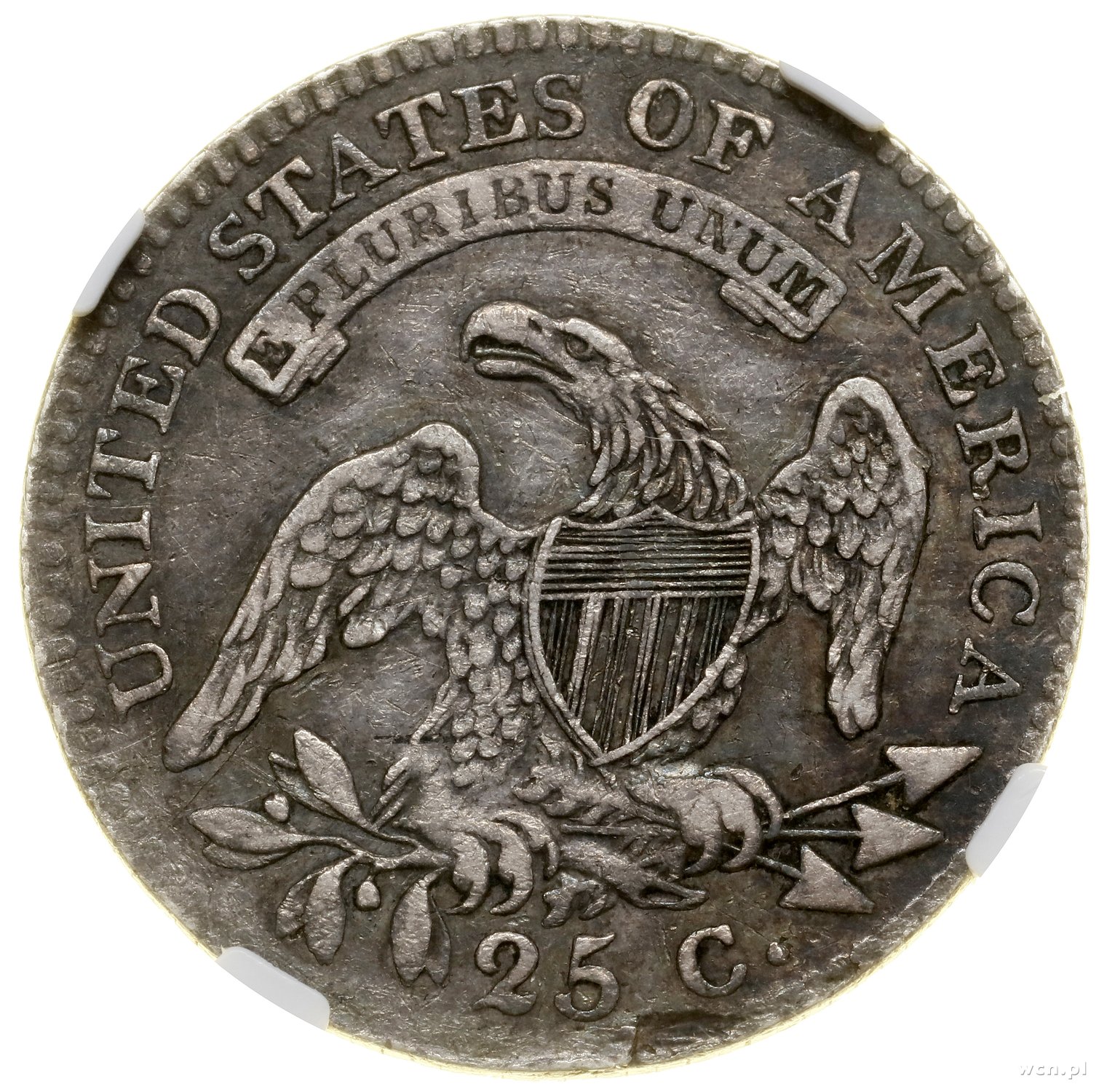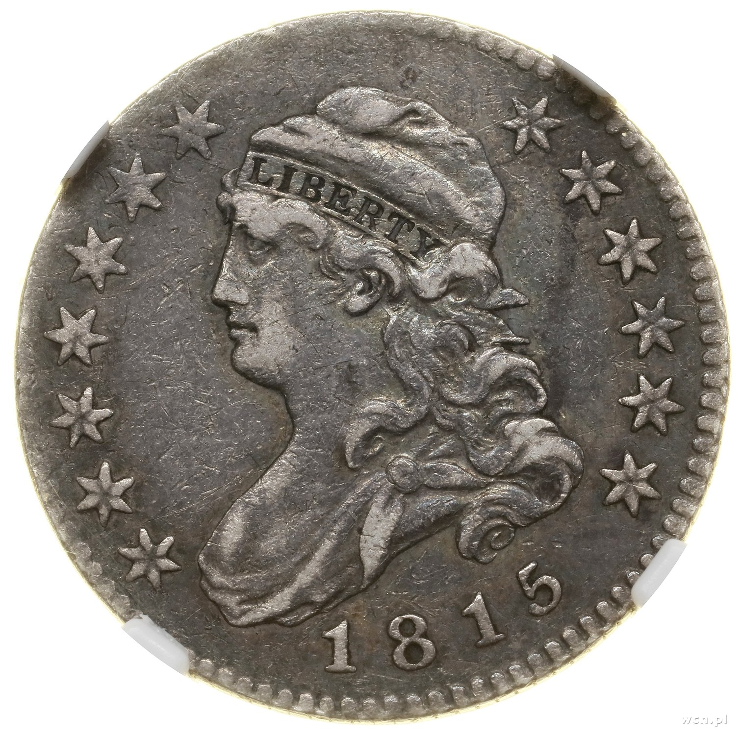 | 517 | STANY ZJEDNOCZONE AMERYKI (USA) 25 centów, 1815, Filadelfia; typ Capped Bust; KM 44; rzadki rocznik, nakład tylko 89.235 sztuk, ciemna patyna, moneta w pudełku NGC 3414979-001 z oceną VF35. |