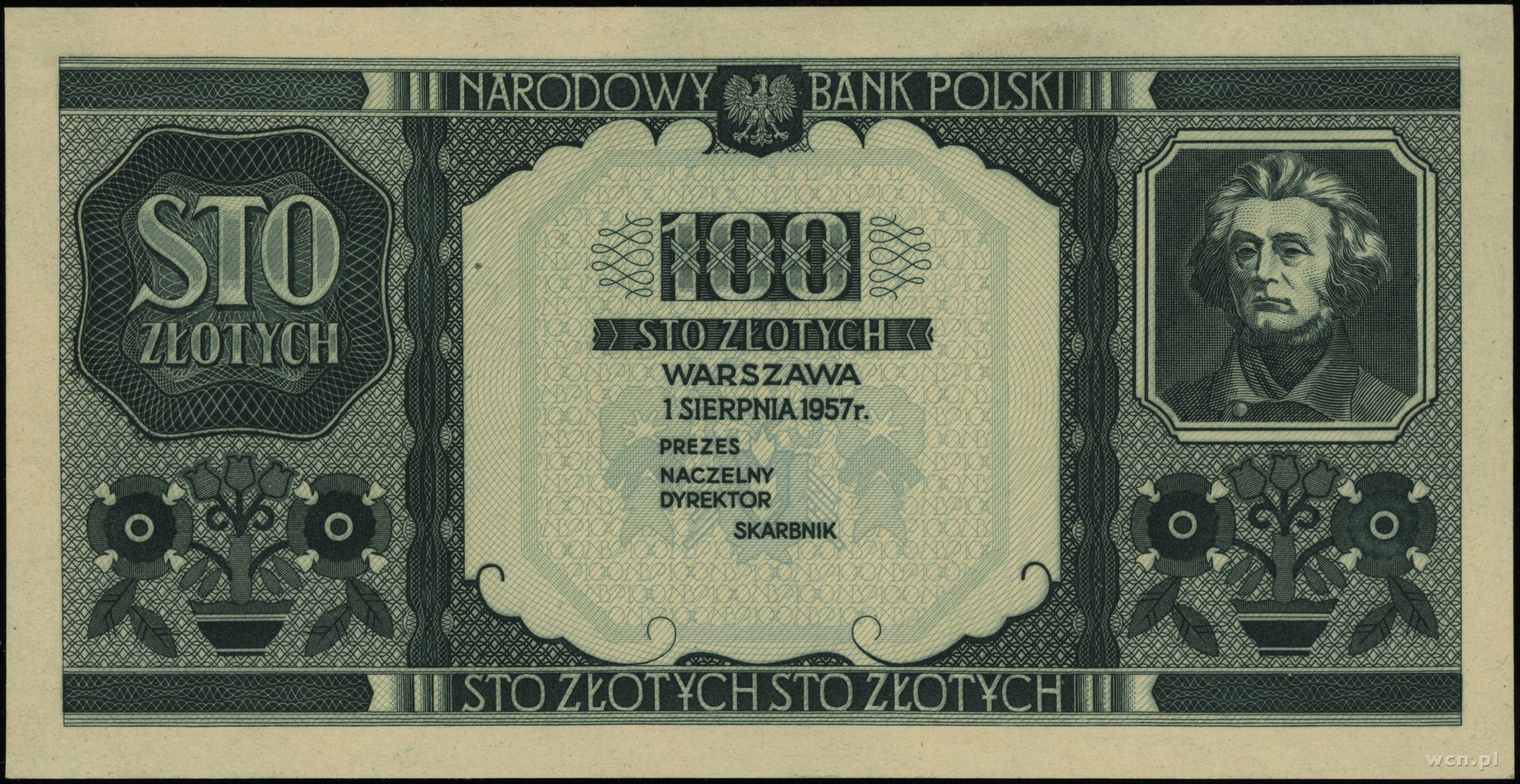 | 344 | NBP, emisja projektowana 1.08.1957. 100 złotych, 1.08.1957; seria brak; druk próbny, sklejone dwa jednostronne; Lucow 1611 (R10) - ilustrowany w katalogu kolekcji | 0 zł | ||