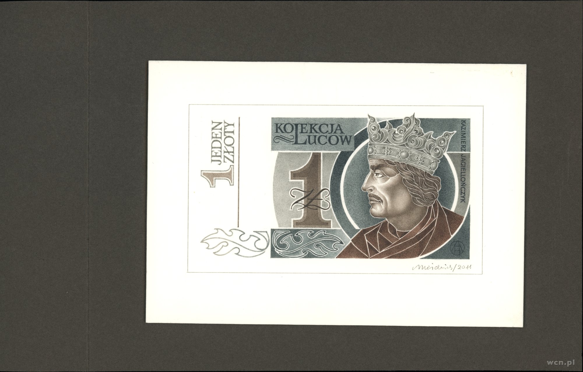 | 359 | Projekty Andrzeja Heidricha dla Kolekcji Lucow. 1 złoty, bez daty; z podpisem projektanta Andrzeja Heidricha oraz rokiem 2011; Lucow 1678b | 0 zł | ||