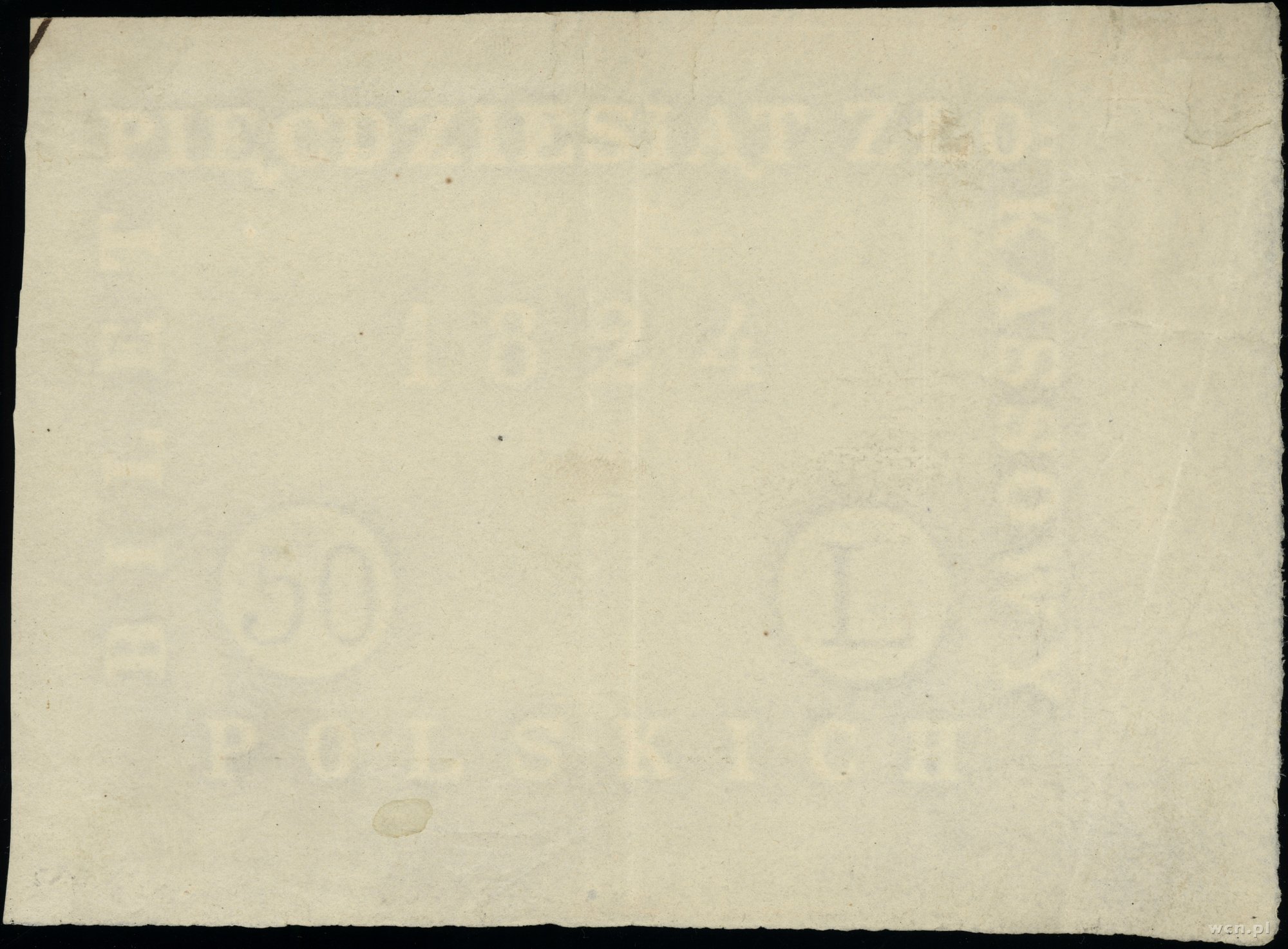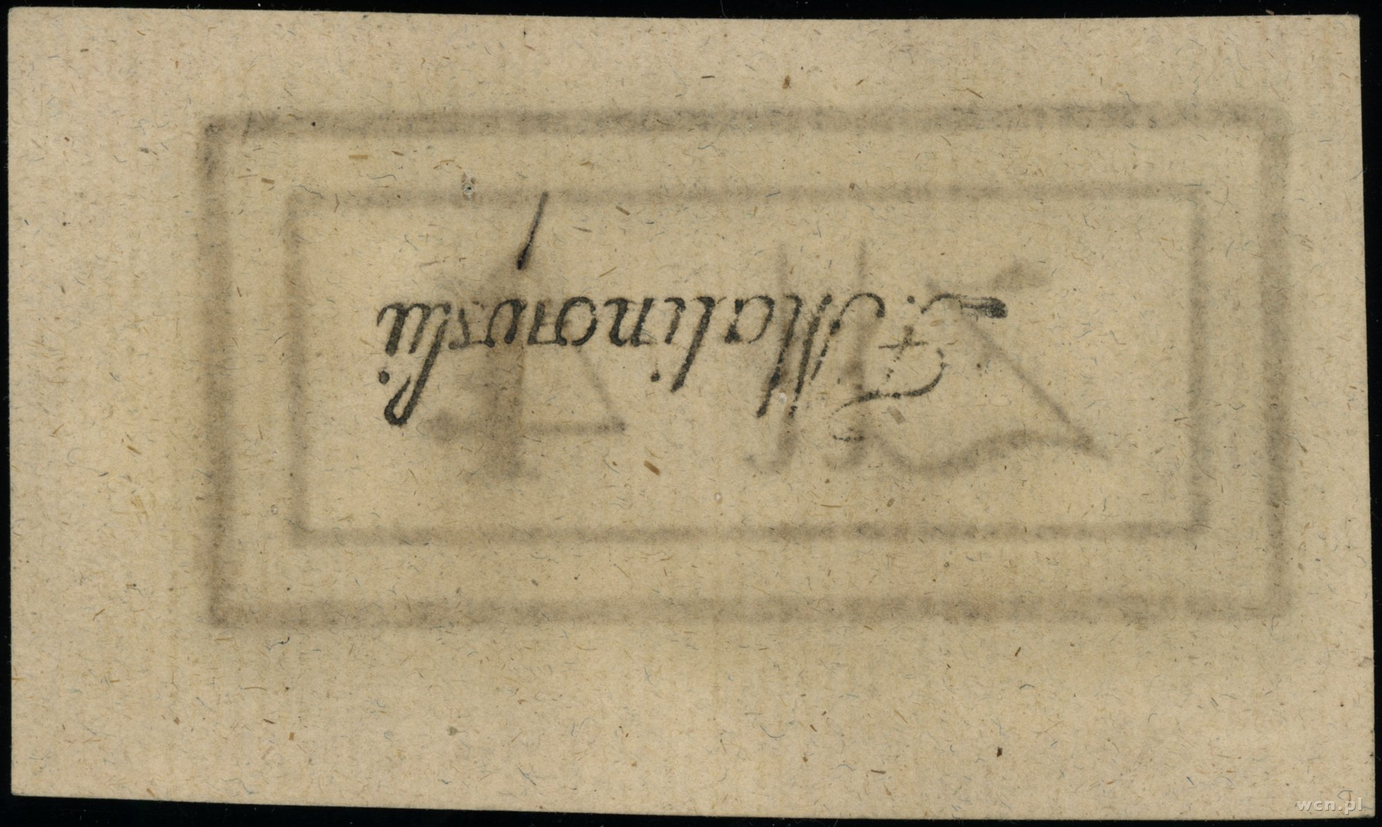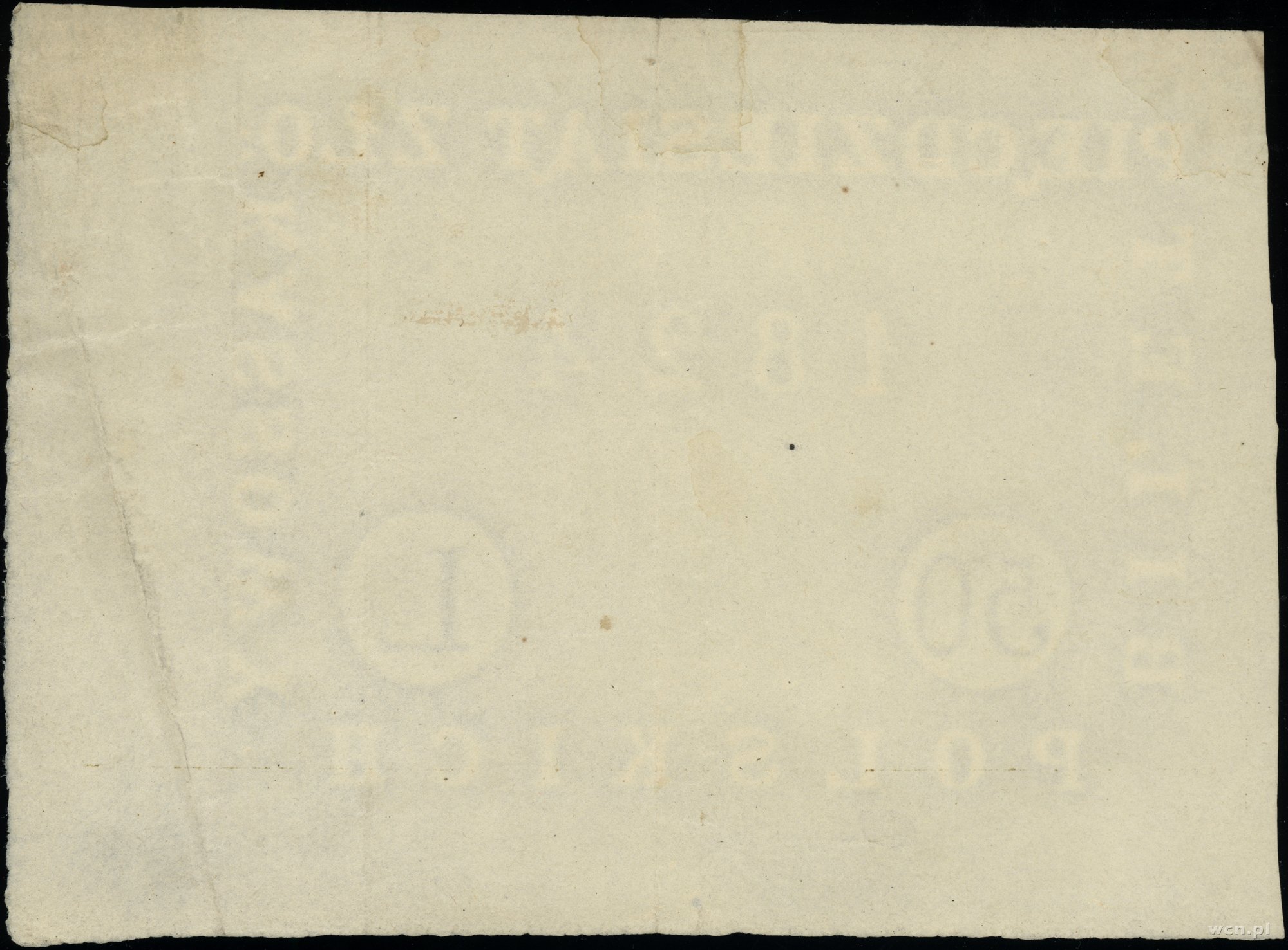 | 34 | Królestwo Polskie - bilety z 1824 r.. 50 złotych polskich, 1824; papier do druku banknotu, ze znakiem wodnym; Lucow 112 (R9) - ilustrowany w katalogu kolekcji, Miłcza.. | 0 zł | ||