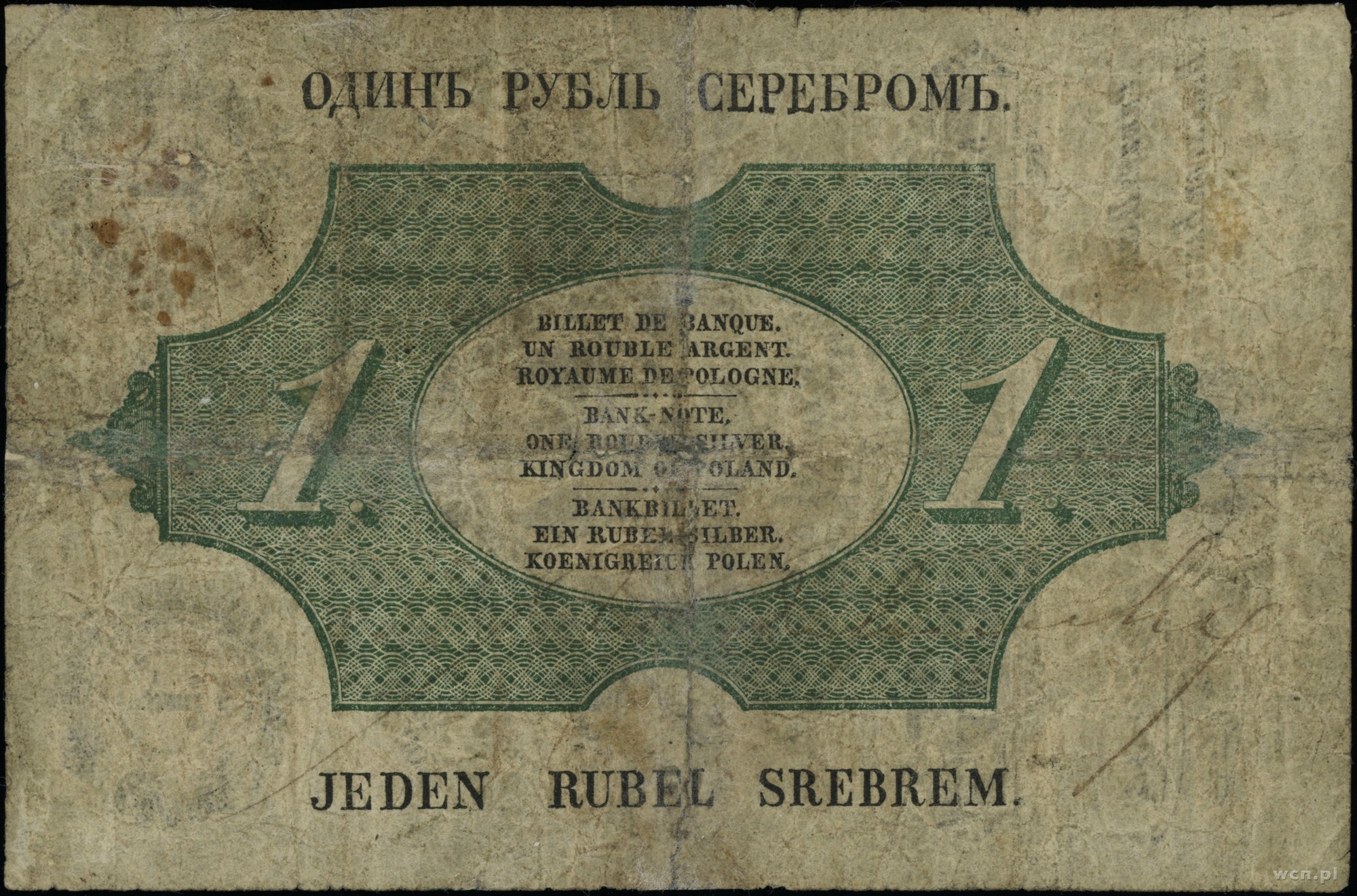 | 40 | Bank Polski - bilety z lat 1841-1866. 1 rubel srebrem, 1855; seria 118, numeracja 6968407; Tymowski / Wenzl; Lucow 170 (R5) - ilustrowany w katalogu kolekcji, Miłczak.. | 0 zł |