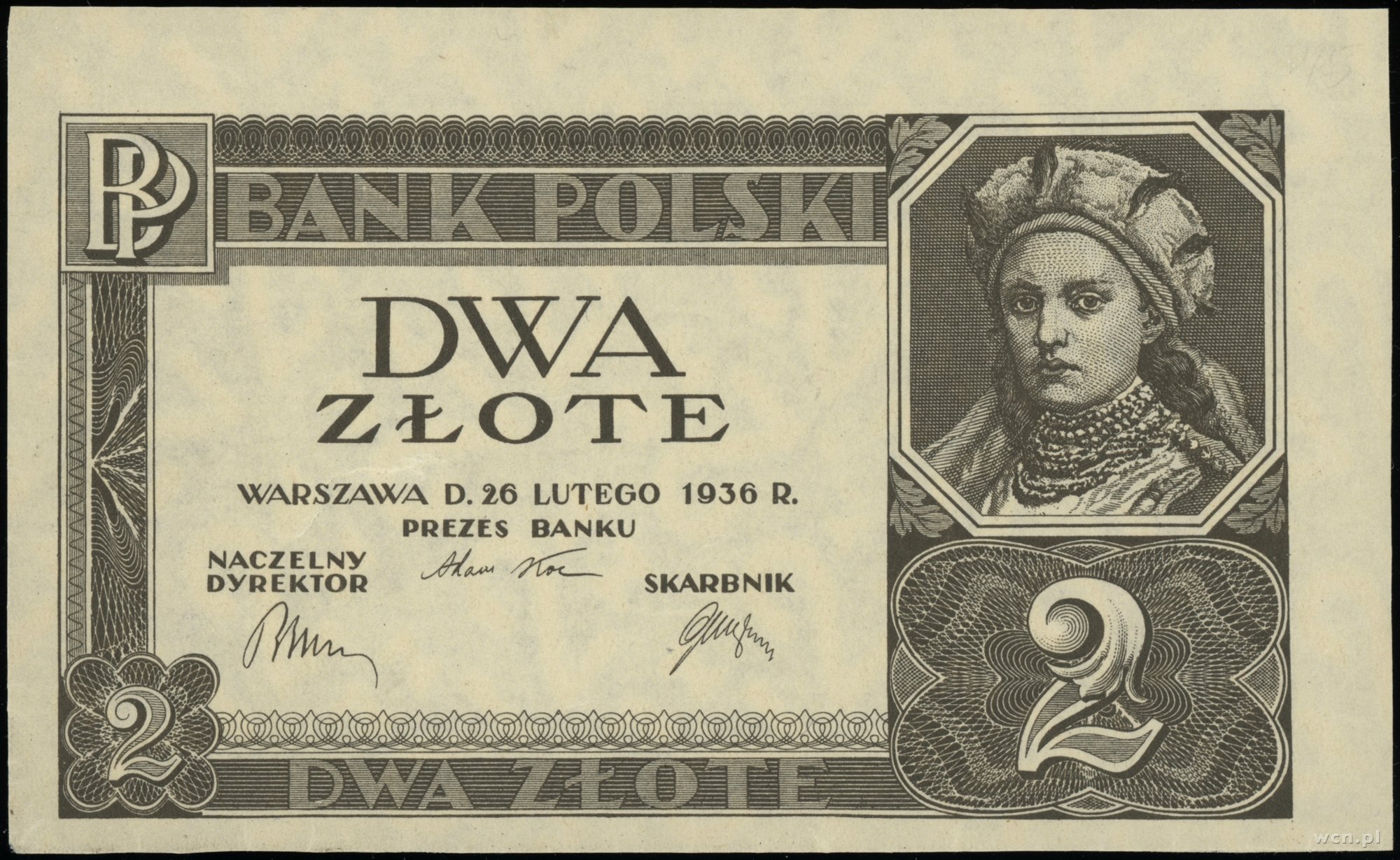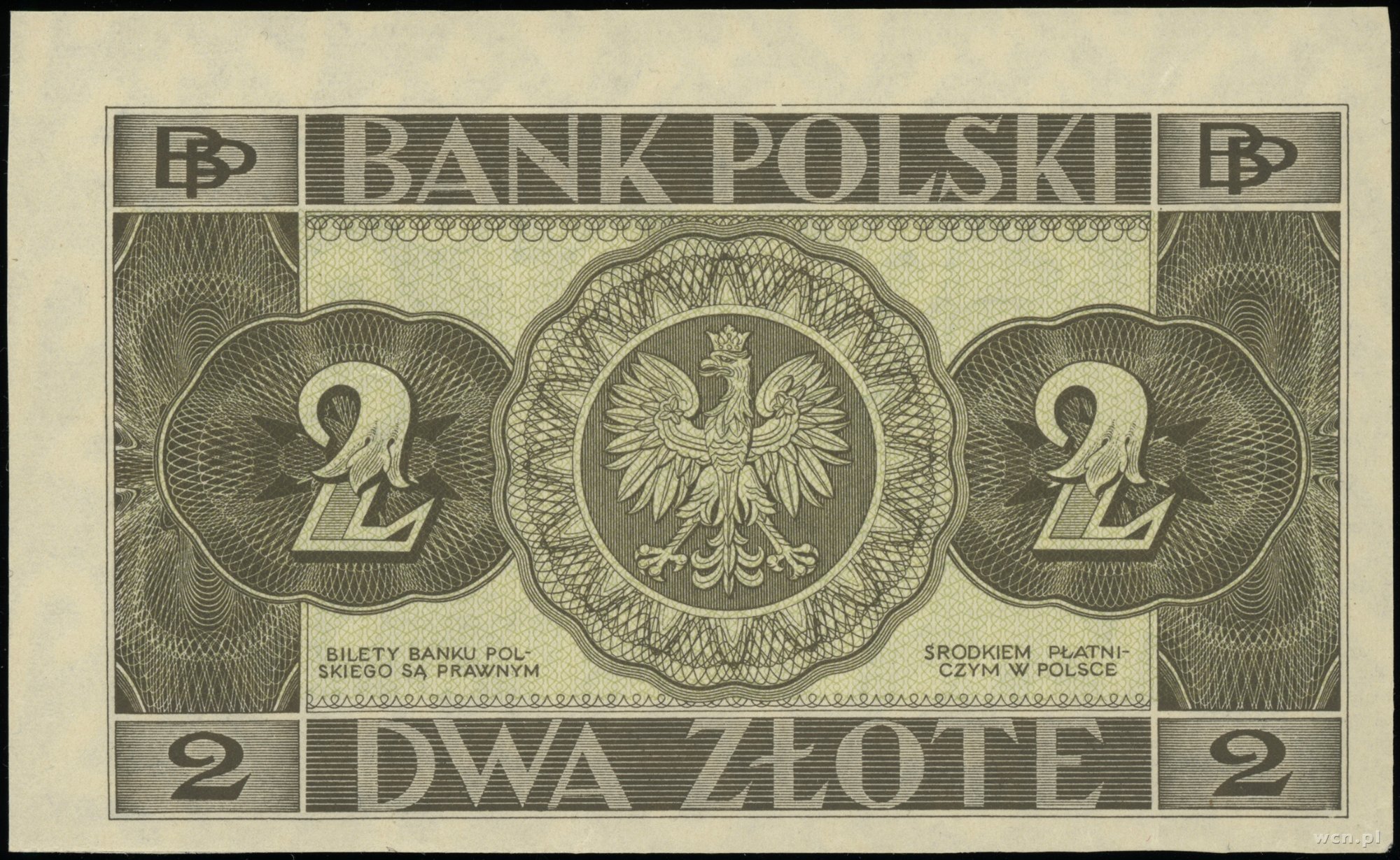 | 128 | Bank Polski, emisja 1936. 2 złote, 26.02.1936; seria brak; bez poddruku na str. głównej, drugi egz.; Lucow 680 (R1), Miłczak 75c, Pick 76r; w opakowaniu firmy PMG 246.. | 0 zł | ||
