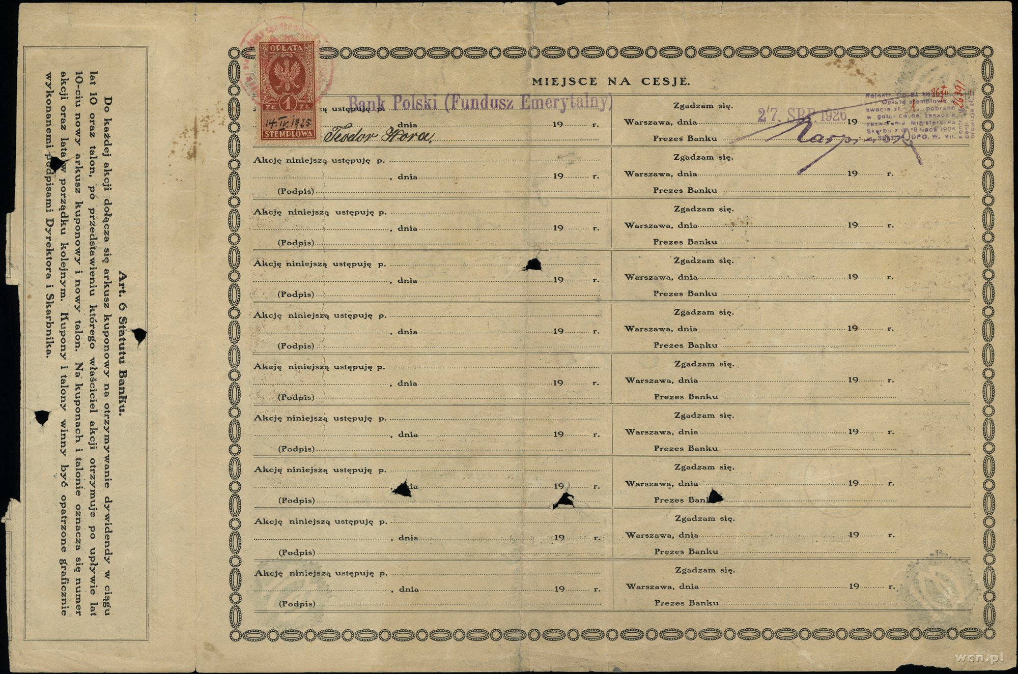 | 140 | Dokumenty, asygnaty, bony i bilety skarbowe z lat 1923-1939. 100 złotych, ?; Lucow tom III str. 250 - ilustrowany w katalogu kolekcji | 0 zł |