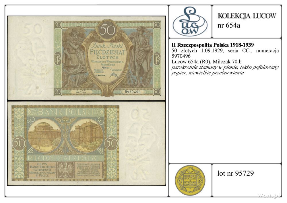 | Opis: | Polska - II Rzeczpospolita Polska 1918-1939, 50 złotych, 1.09.1929, seria CC., numeracja 5970496 |