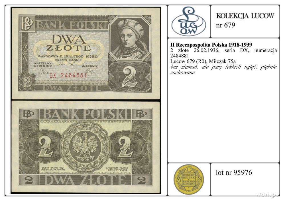 | Opis: | Polska - II Rzeczpospolita Polska 1918-1939, 2 złote, 26.02.1936, seria DX, numeracja 2484881 |
