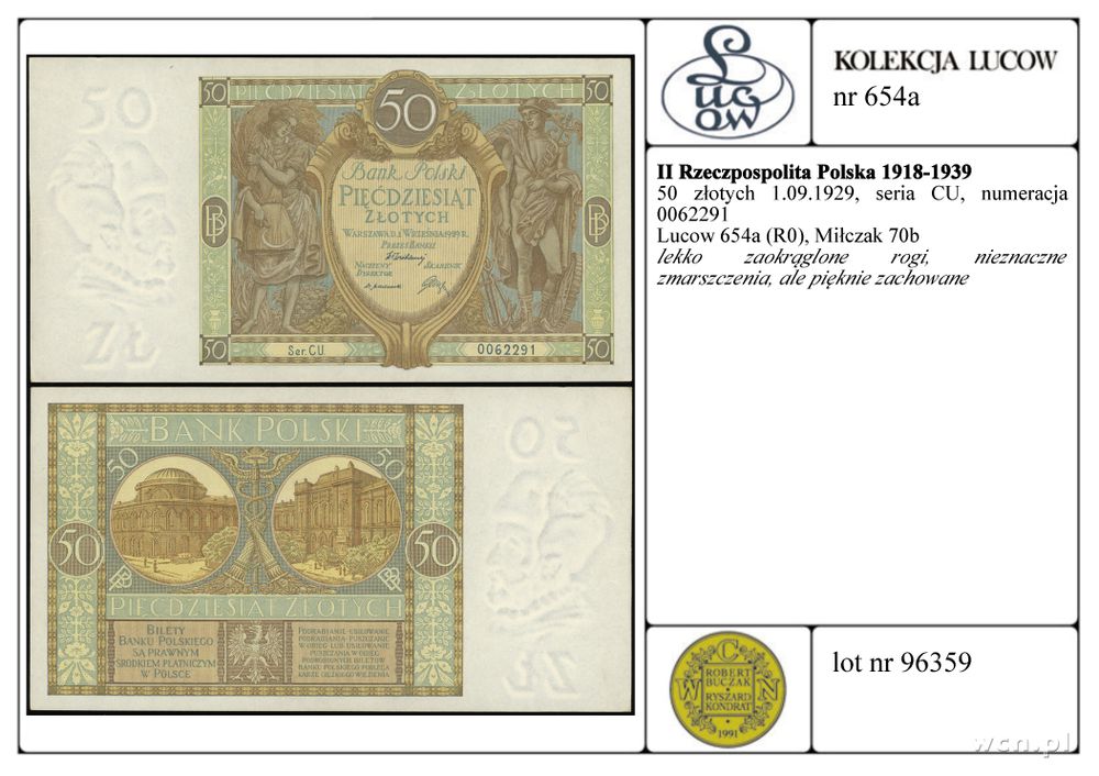 Polska - II Rzeczpospolita Polska 1918-1939, 50 złotych, 1.09.1929, seria CU, numeracja 0062291 |
