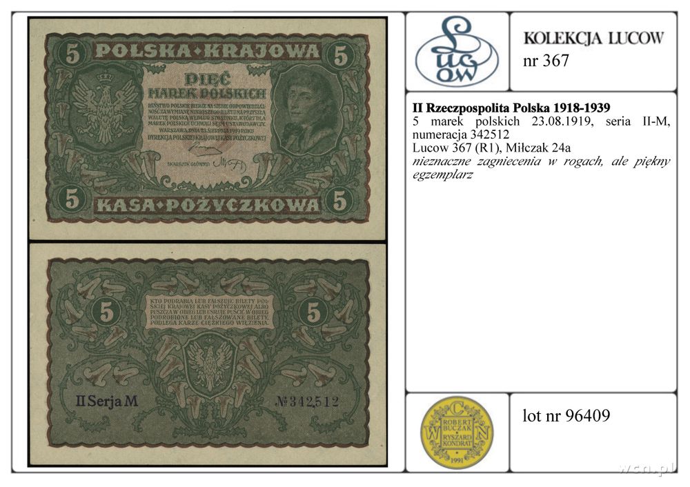 | Opis: | Polska - II Rzeczpospolita Polska 1918-1939, 5 marek polskich, 23.08.1919, seria II-M, numeracja 342512 |