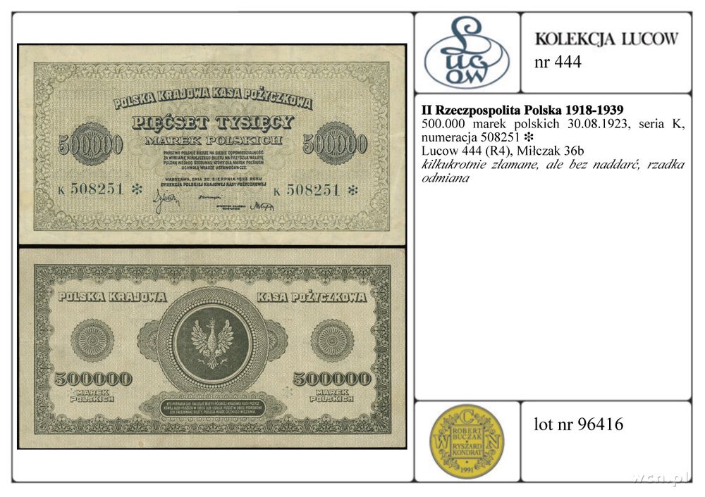 | Opis: | Polska - II Rzeczpospolita Polska 1918-1939, 500.000 marek polskich, 30.08.1923, seria K, numeracja 508251 ❉ |