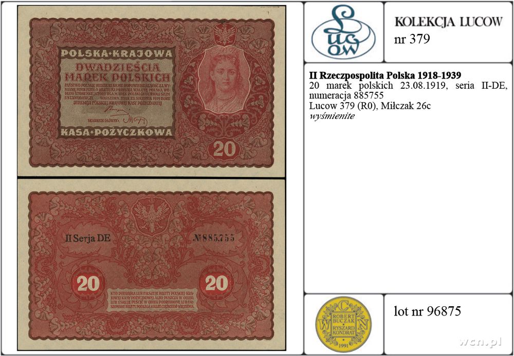 Polska - II Rzeczpospolita Polska 1918-1939, 20 marek polskich, 23.08.1919, seria II-DE, numeracja 885755 |