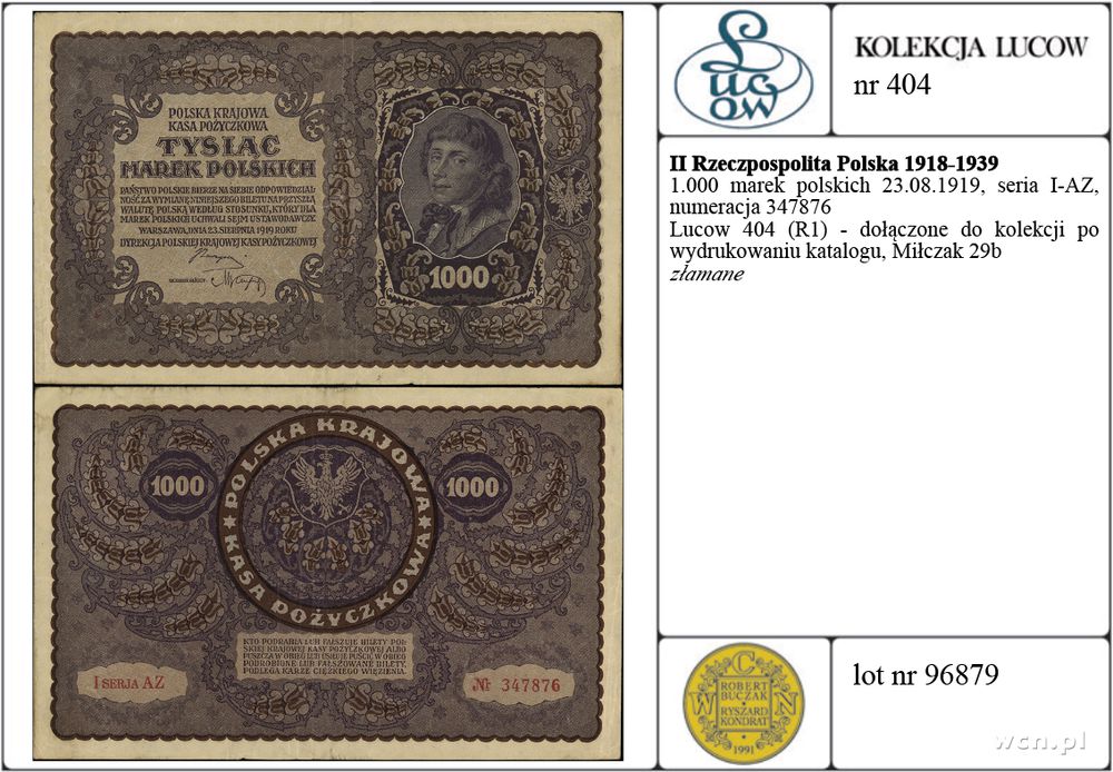 | Literatura: | Lucow 404 (R1) - dołączone do kolekcji po wydrukowaniu katalogu, Miłczak 29b |