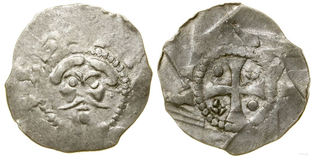 | Opis: | Niderlandy - Namur - hr. Albert III (1063–1102), denar, Namur, Aw: Głowa na wprost, ALBE…, Rw: Krzyż, w kątach naprzemiennie kulka i mały krzyż, legenda |