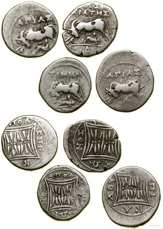 Opis: | Grecja i posthellenistyczne - Iliria - Apollonia, zestaw 4 x drachma, 1. 2 x Agias/Epikados 2. Sosikrates/Nikonos 3. Timen/Damofontos |