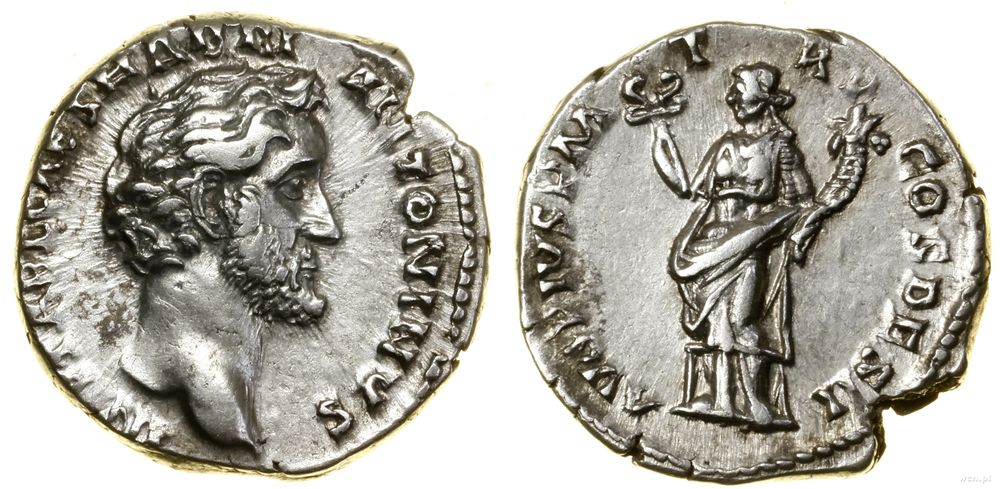 Opis: | Cesarstwo Rzymskie - Antoniusz Pius (138–161), denar, (138), Rzym, Aw: Głowa cesarza w prawo, IMP T AEL CAES HADRI ANTONINVS; Rw: Felicitas z kaduceuszem i rogiem obfitości stojąca w lewo, AVG PIVS P M TR P COS DES II |