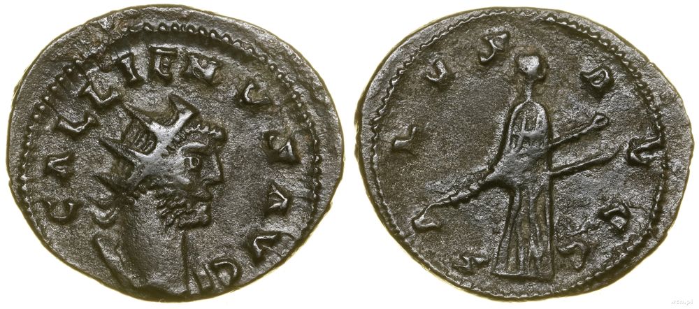 Opis: | Cesarstwo Rzymskie - Galien (253–268), antoninian bilonowy, Mediolan (?), Aw: Popiersie cesarza w koronie radialnej w prawo, GALLIENVS AVG, Rw: Salus stojąca w prawo, karmiąca węża, SALVS AVGG |