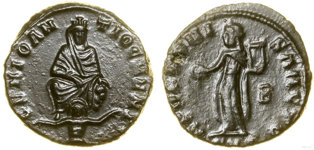 Opis: | Cesarstwo Rzymskie - Maksymin II Daja (305–313), brąz, (310–313), Antiochia, Aw: Tyche siedząca na tronie, na wprost, poniżej Orontes, GENIO ANTIOCHENI, Rw: Apollo stojący w lewo, trzymający paterę, APOLLONI SANCTO, z prawej B, w odcinku SMB(?) |