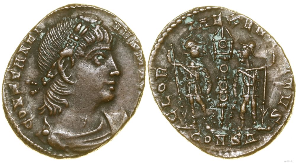 Opis: | Cesarstwo Rzymskie - Konstantyn I Wielki (307–337), follis, (330–333), Konstantynopol, Aw: Popiersie w prawo, CONSTANTINVS MAX AVG; Rw: Dwaj żołnierze z włóczniami, między nimi dwa sztandary legionowe, GLORIA EXERCITVS, w odcinku CONSΔ |