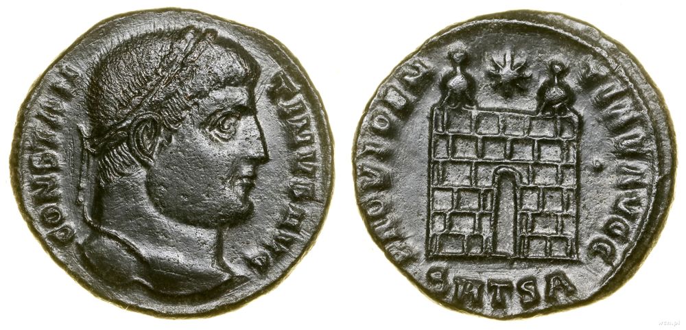Opis: | Cesarstwo Rzymskie - Konstantyn I Wielki (307–337), follis, (326–328), Tessaloniki, Aw: Głowa cesarza w prawo, CONSTANTINVS AVG; Rw: Brama obozowa z dwiema wieżami, u góry gwiazda, po prawej kropka, PROVIDENTIAE AVGG, w odcinku SMTSA |